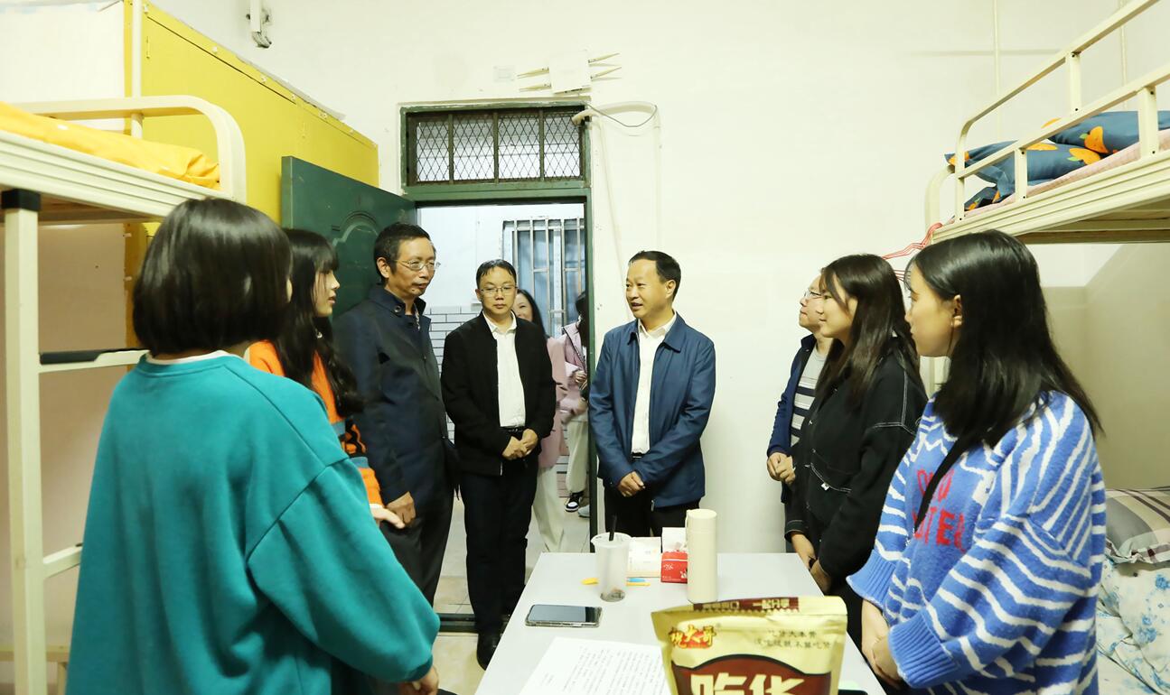 10月11日晚,学校党委书记刘志勇带队深入食堂、2020级新生宿舍看望新同学,对同学们踏入大学校门表示诚挚的欢迎,致以亲切的问候。