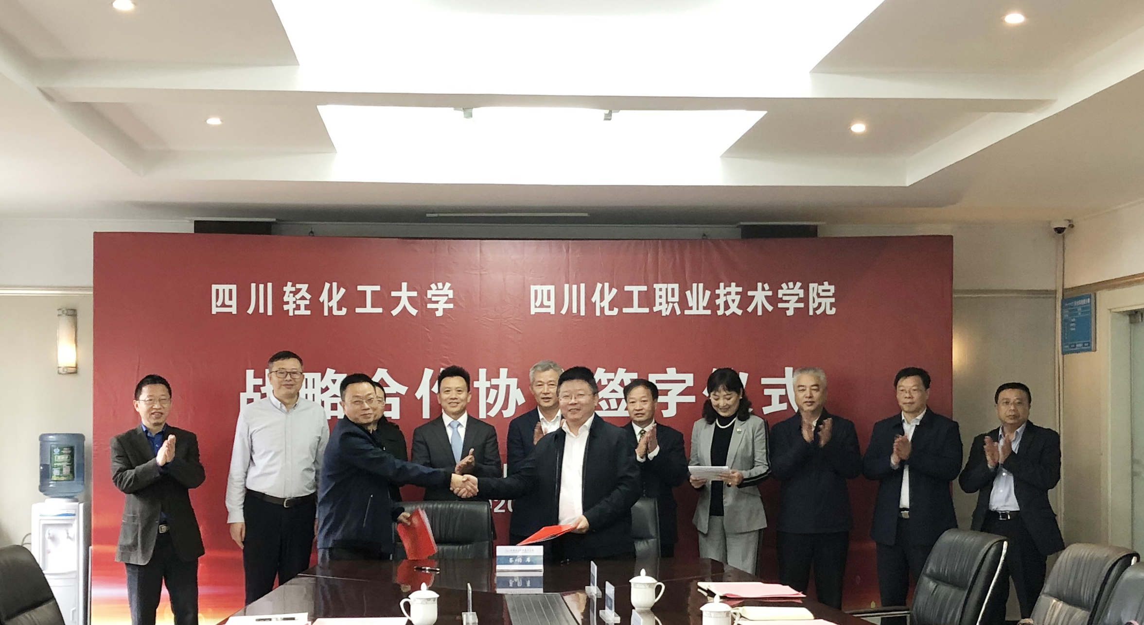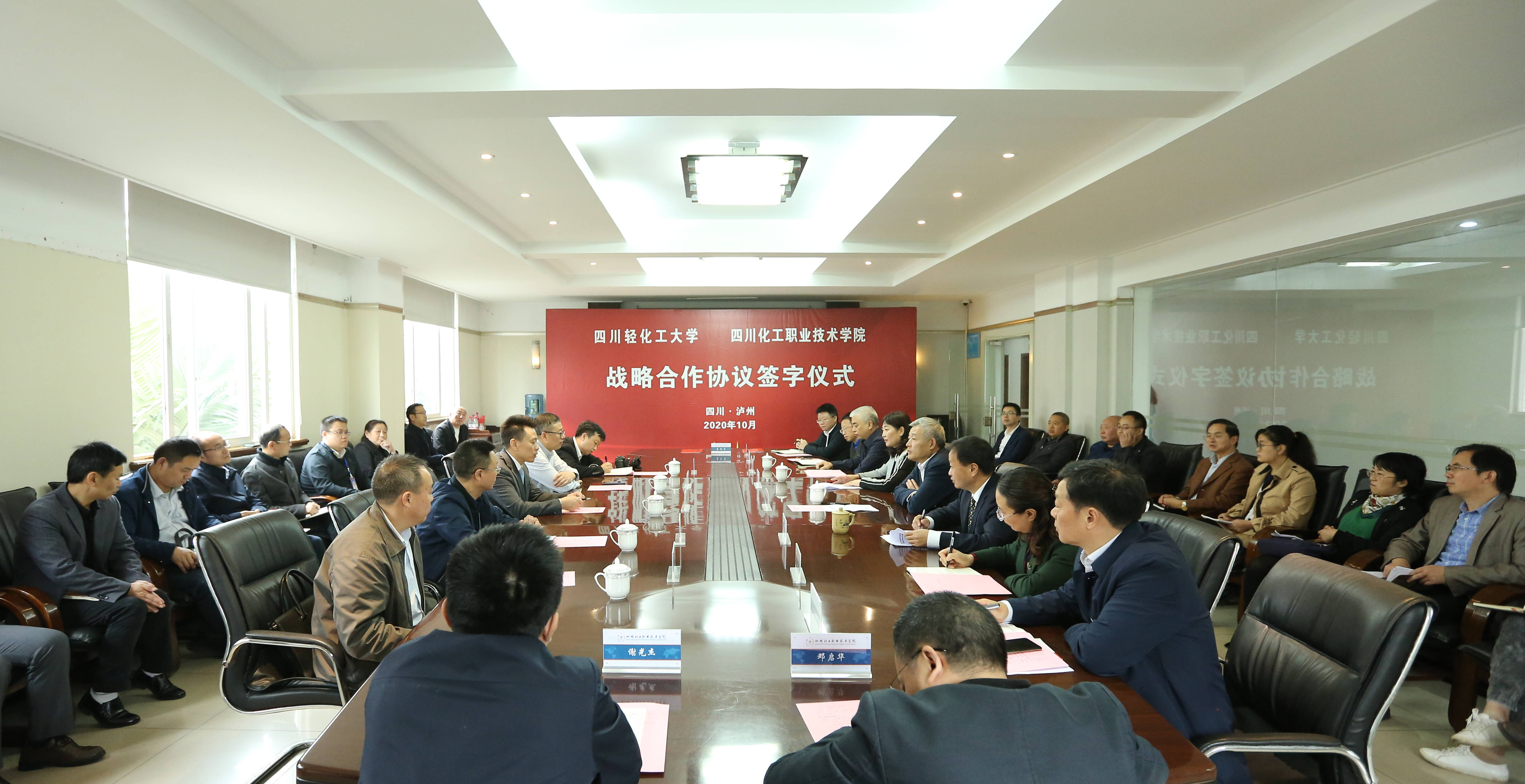 四川轻化工大学党政办刘兴勇主任、教务处孙山处长、继续教育学院钟世荣院长、校友总会何俊材秘书长,四川化工职业技术学院院长助理谢光杰、相关部门领导参加此次签约仪式。