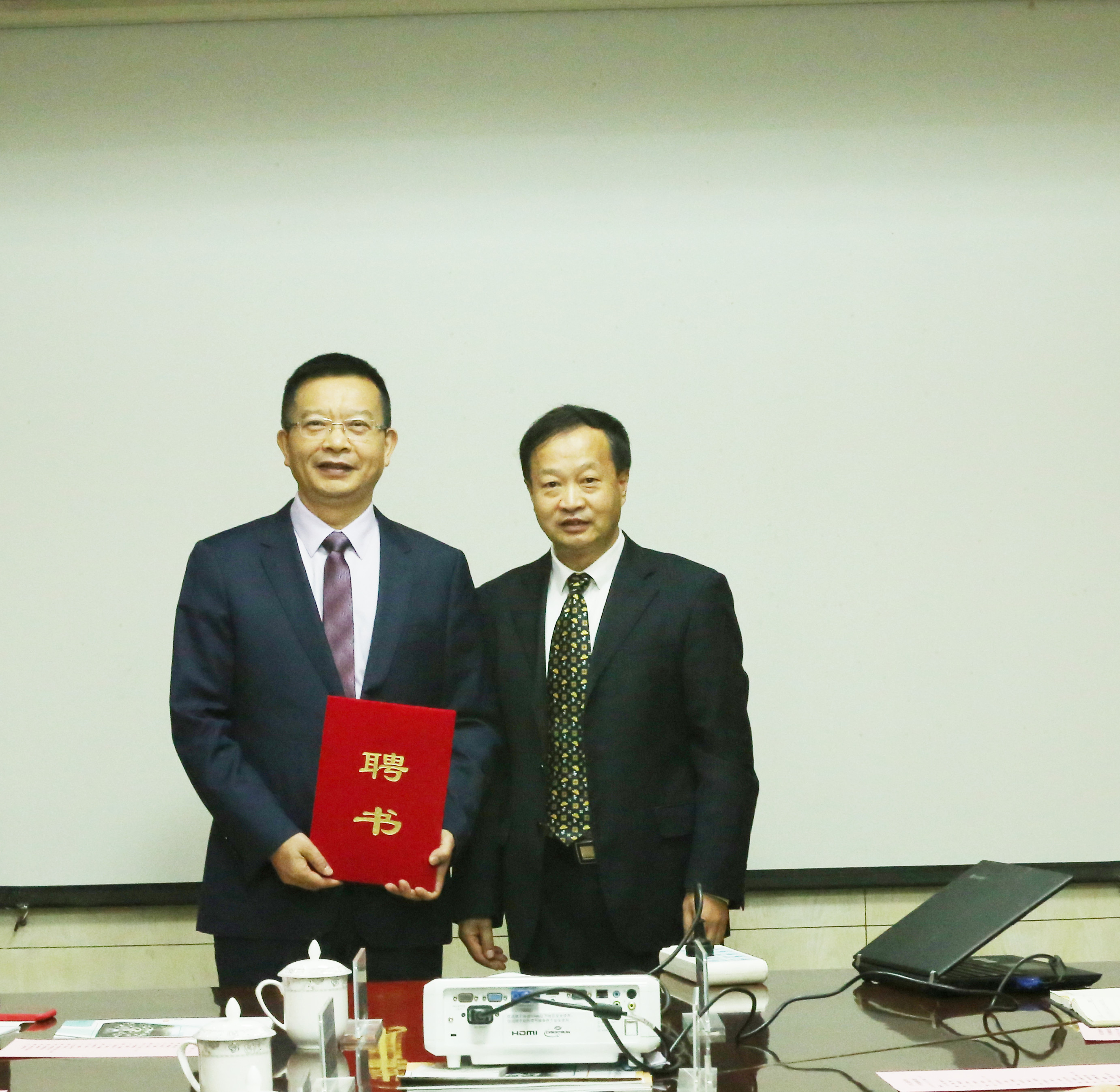 座谈会上,刘志勇向谭光军颁发了学校特聘教授证书。