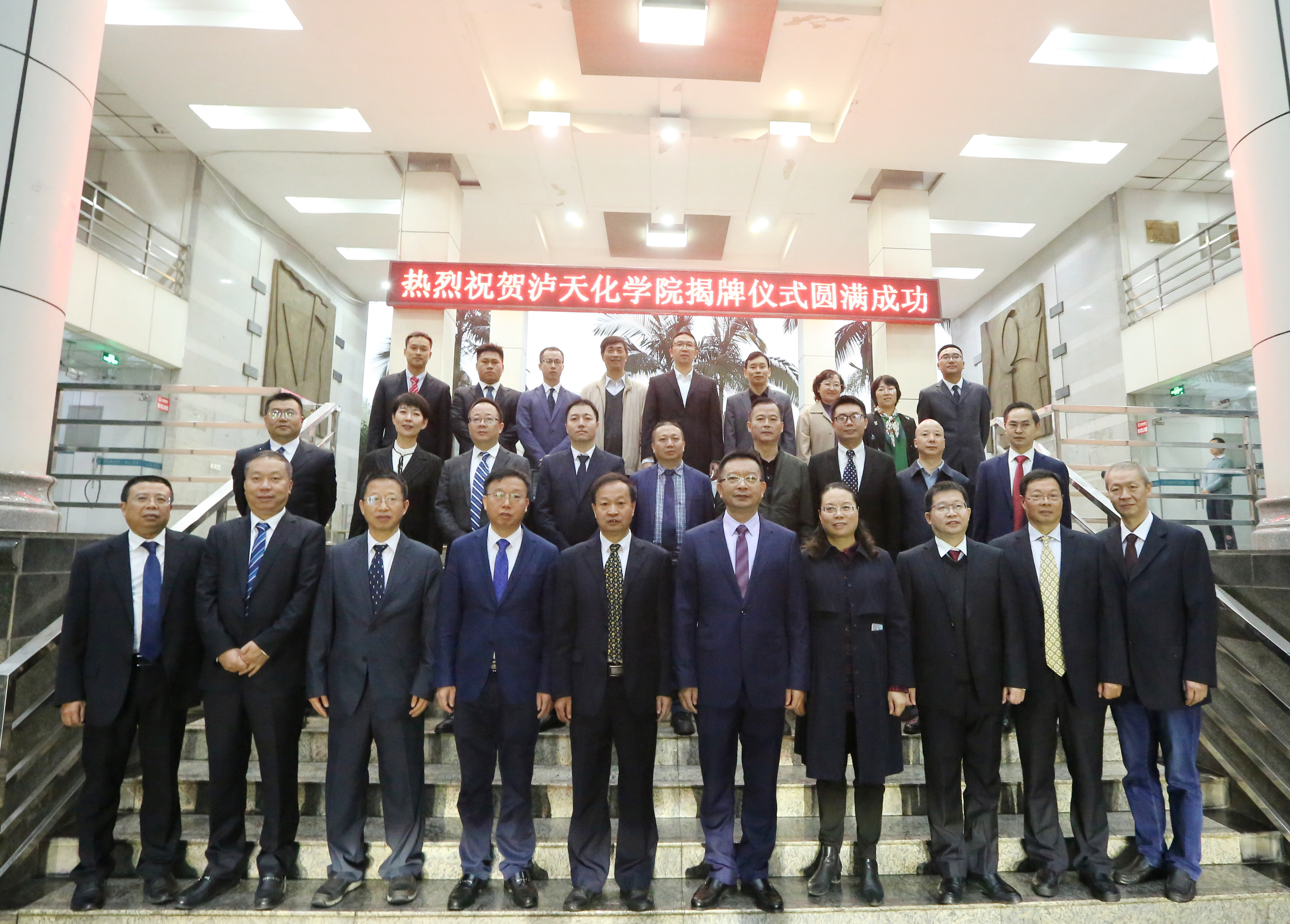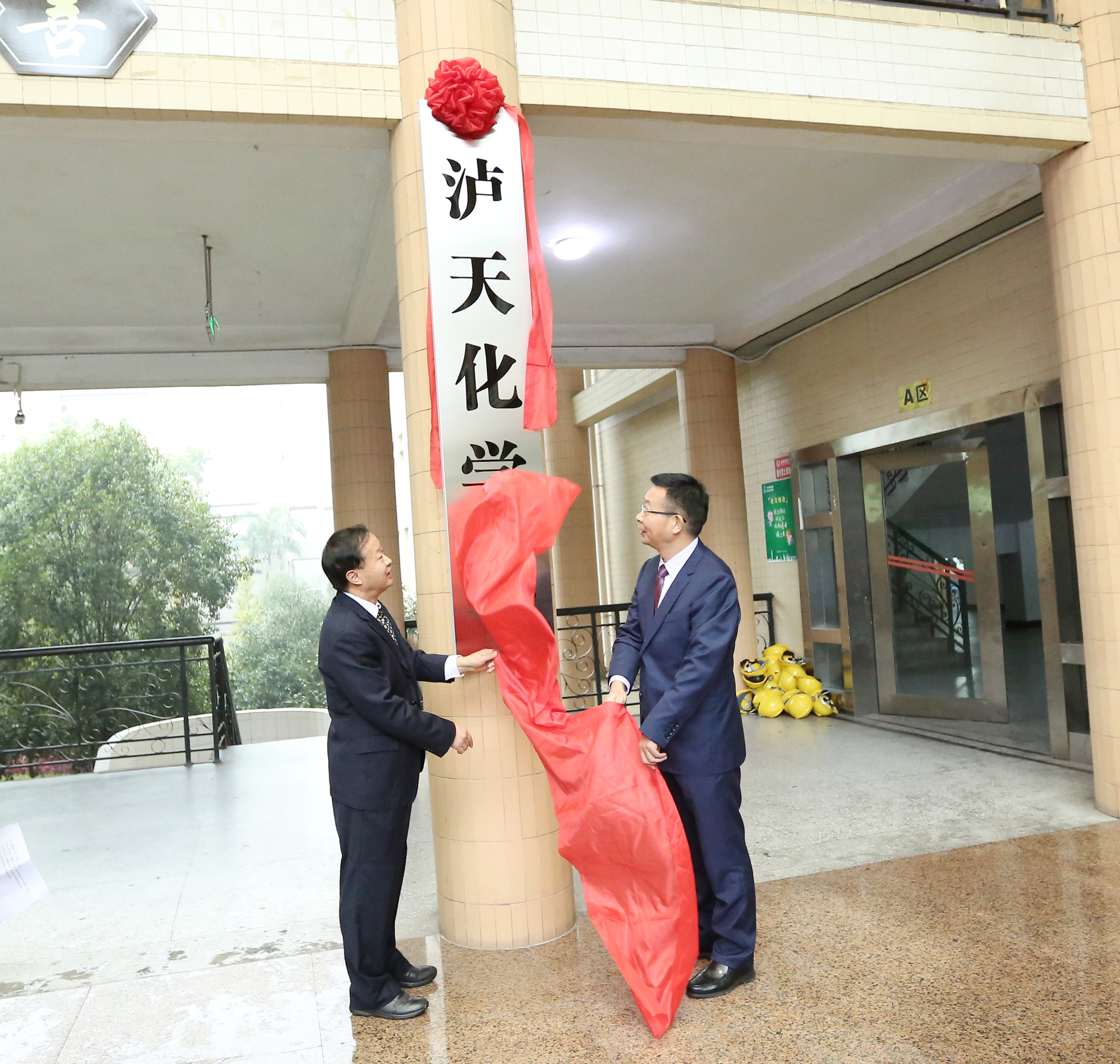 泸天化(集团)有限责任公司常务副总经理傅利才、综合部部长陈锦、党群部部长殷郊、办公室副主任王漫萍及相关工作人员,泸天化股份有限公司人力资源部部长何鸿剑,天华股份有限公司人力资源部部长张绍明,中蓝新材料公司综合部部长唐川,学校院长助理谢光杰、继续教育处、科研处、教务处、招生就业处(校企合作办公室)、党委宣传部、人事处、学生处、应用化工学院负责人等参加揭牌仪式。