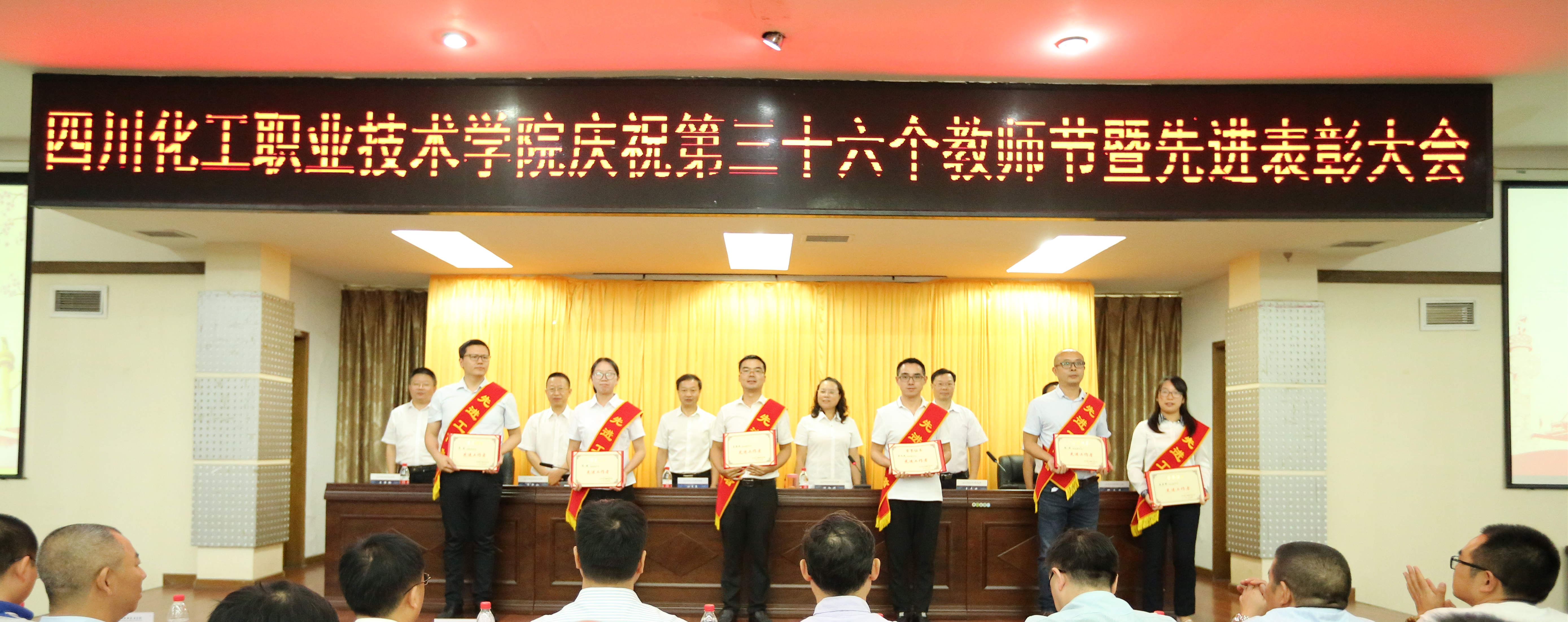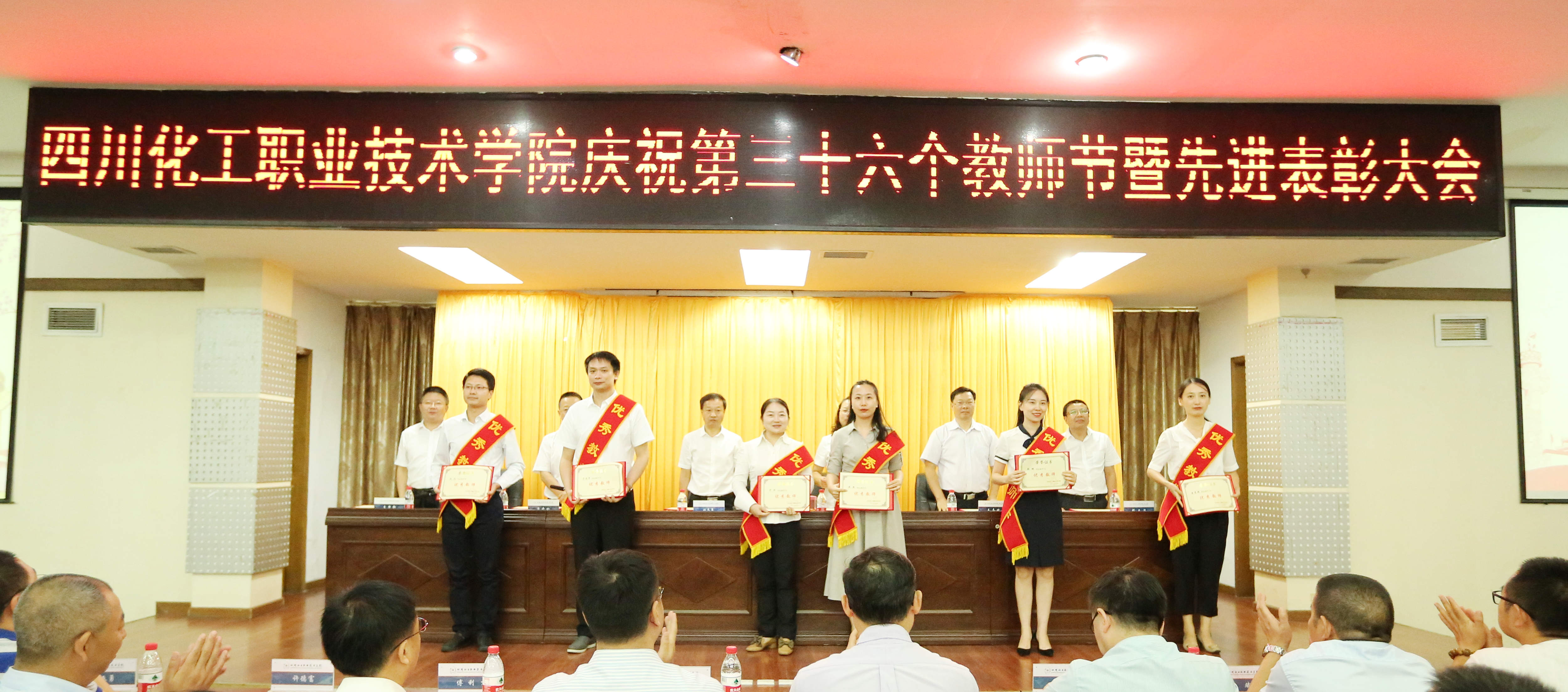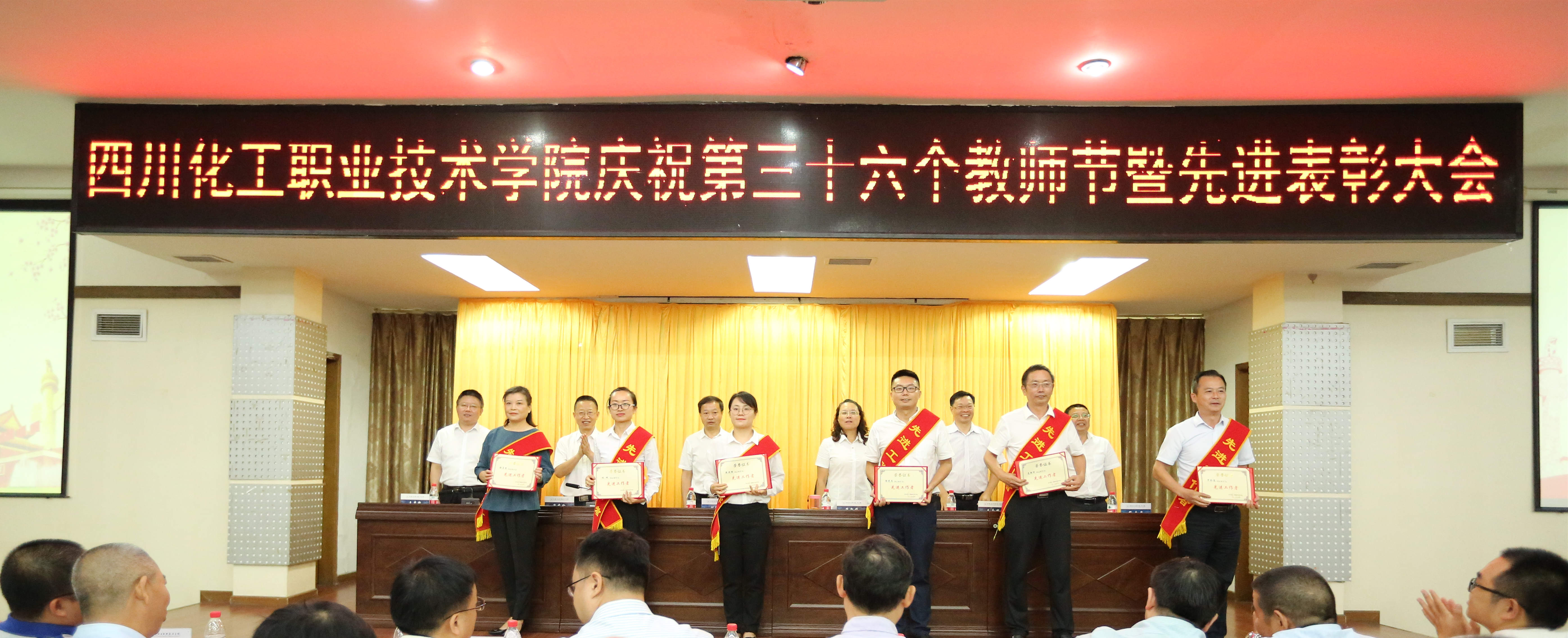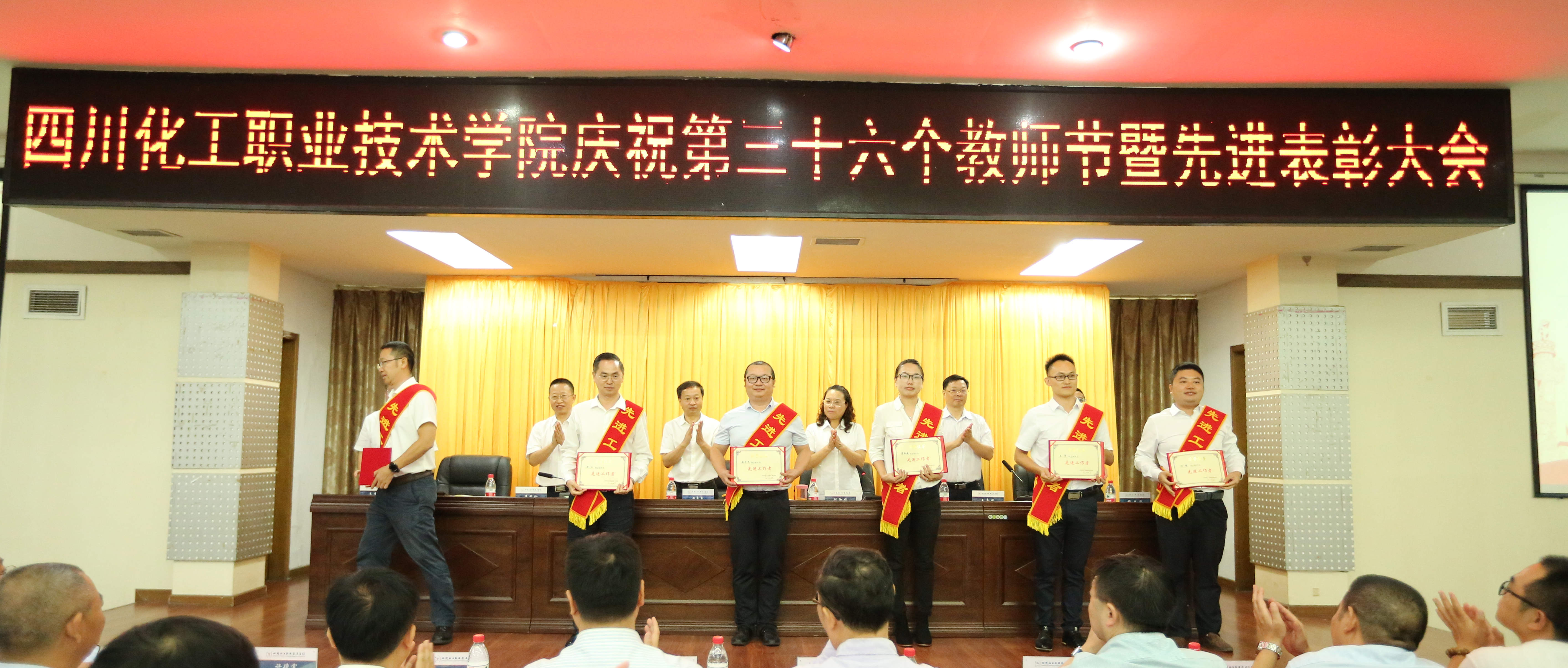 为庆祝第36个教师节,鼓励先进、树立典型,激励广大教职员工献身教育事业,打赢争创“双高”攻坚战,9月10日,学校在行政楼五楼会议室隆重庆祝第36个教师节暨先进表彰大会。学校党委书记刘志勇,校党委委员、副院长蒲开伦、王志斌、文申柳,副院长邓启华出席,校党委副书记、纪委书记、工会主席陈淑娟主持。
