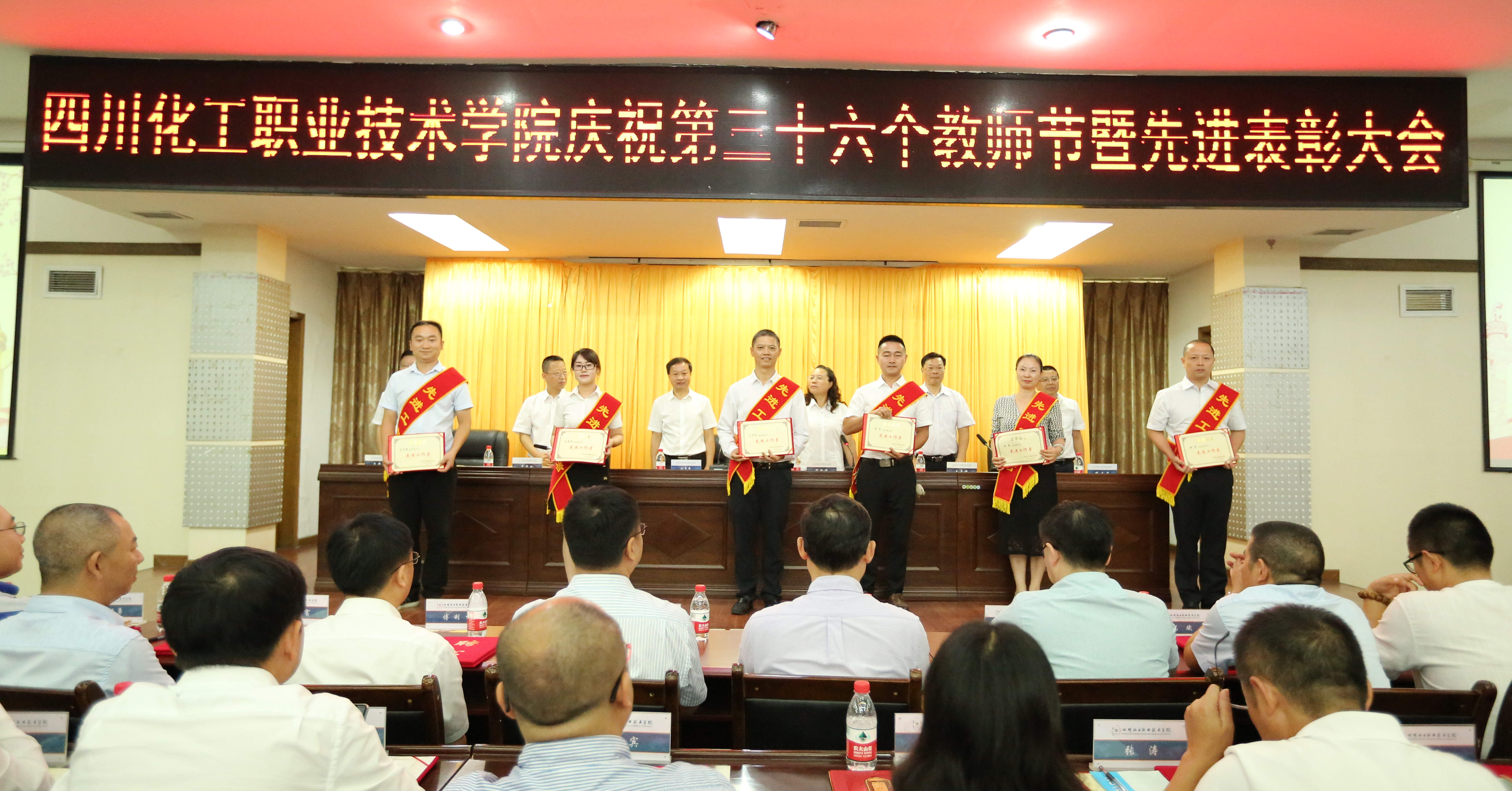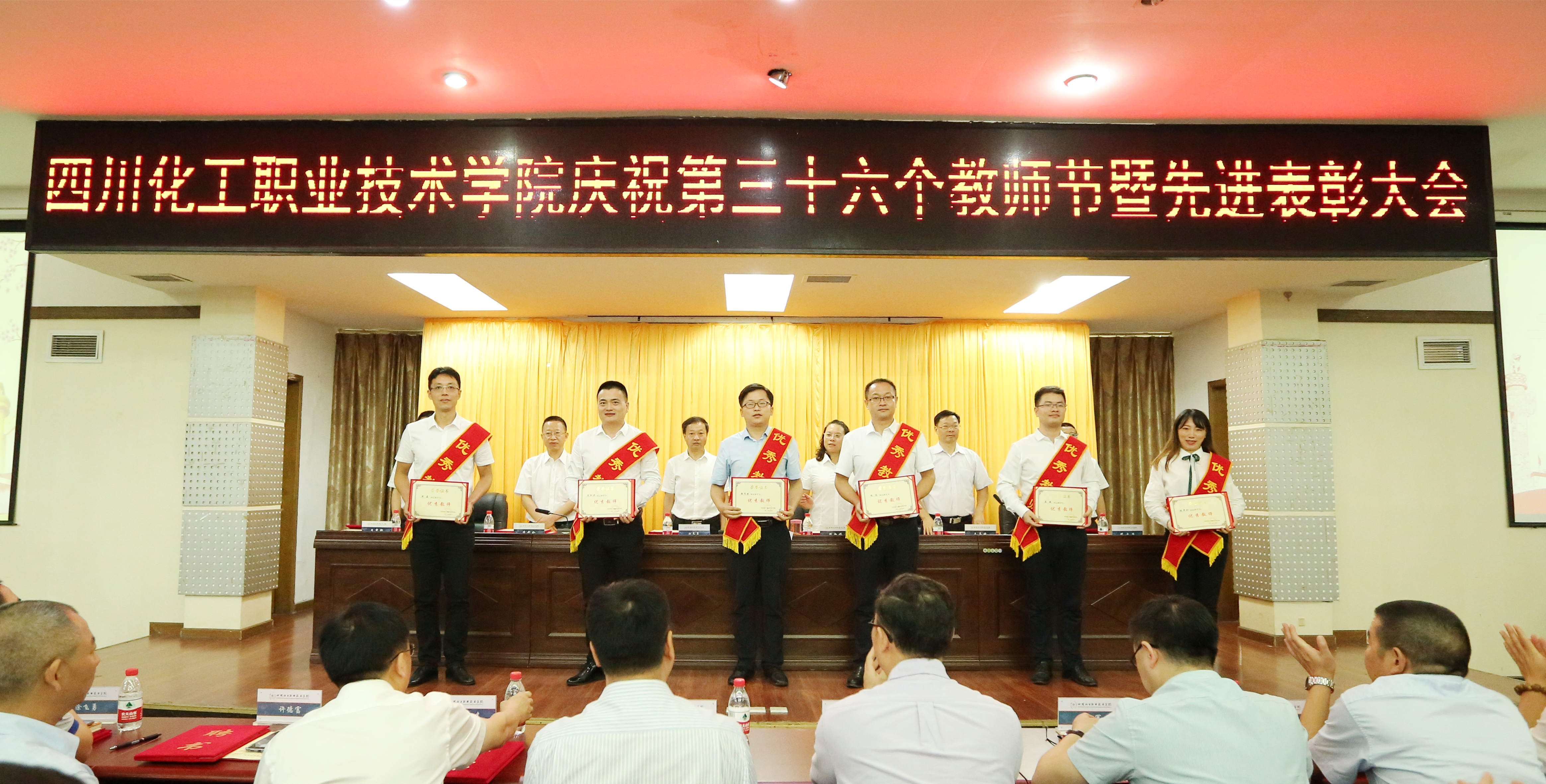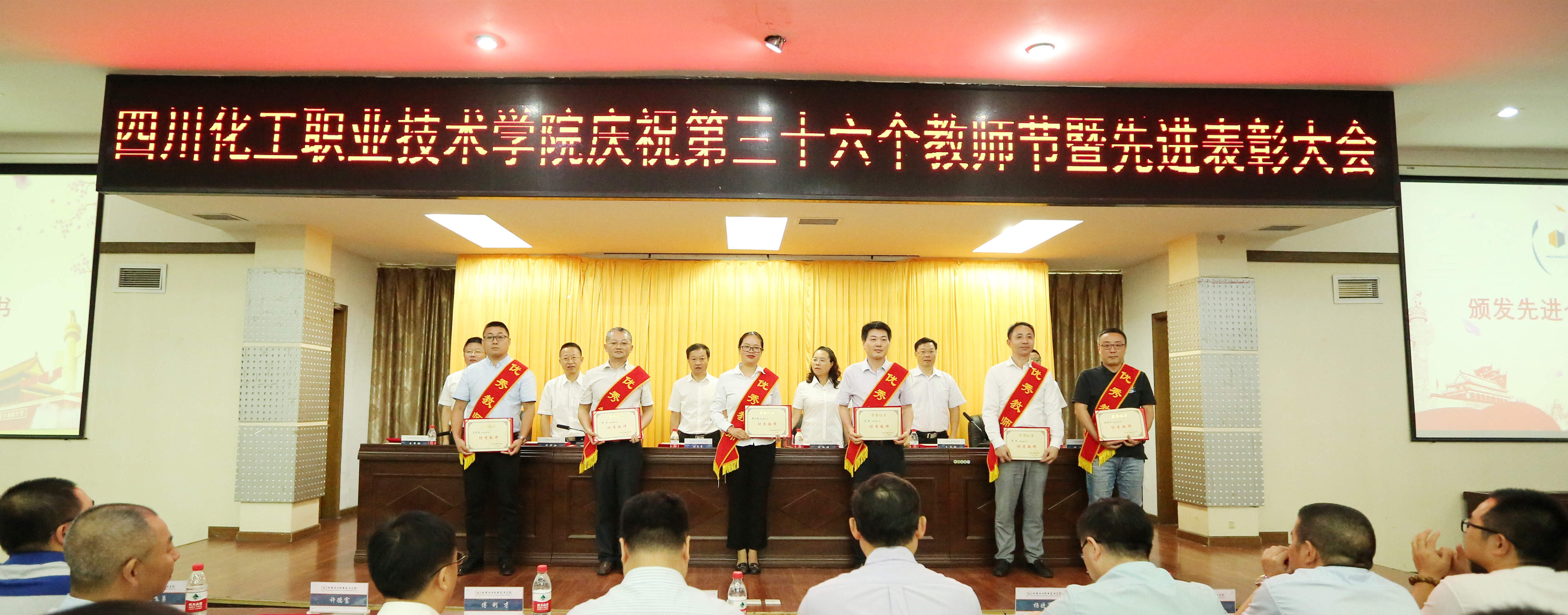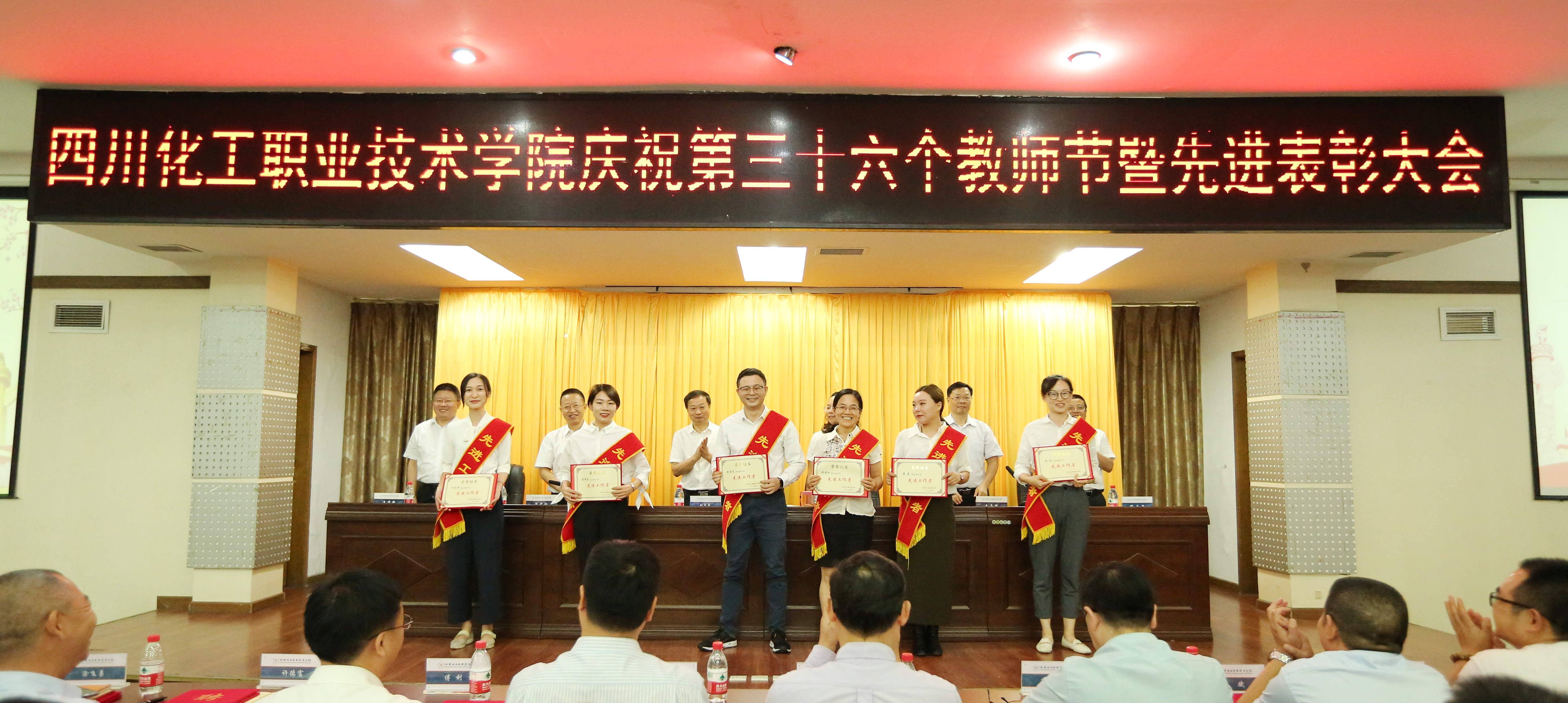 为庆祝第36个教师节,鼓励先进、树立典型,激励广大教职员工献身教育事业,打赢争创“双高”攻坚战,9月10日,学校在行政楼五楼会议室隆重庆祝第36个教师节暨先进表彰大会。学校党委书记刘志勇,校党委委员、副院长蒲开伦、王志斌、文申柳,副院长邓启华出席,校党委副书记、纪委书记、工会主席陈淑娟主持。