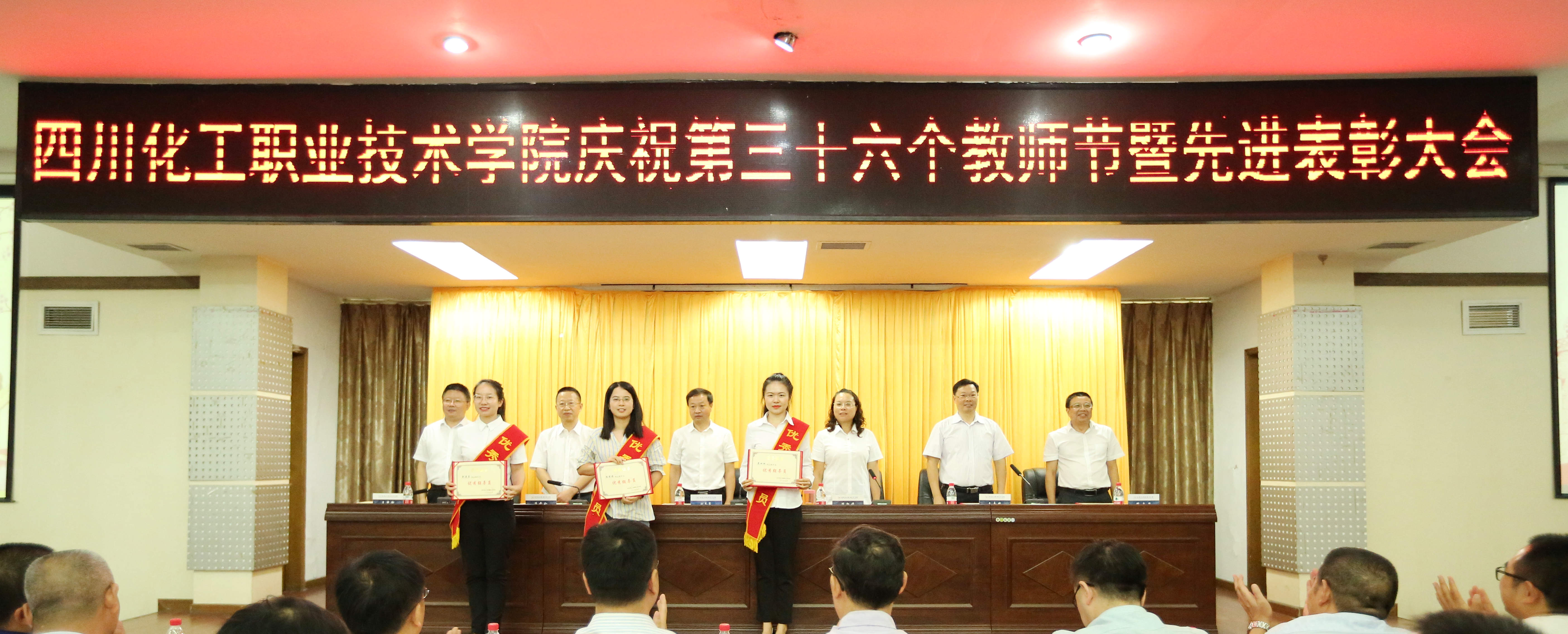 文申柳副院长分别宣读了中共四川省委教育工委、 四川省教育厅及四川省经济和信息化厅的教师节慰问信.