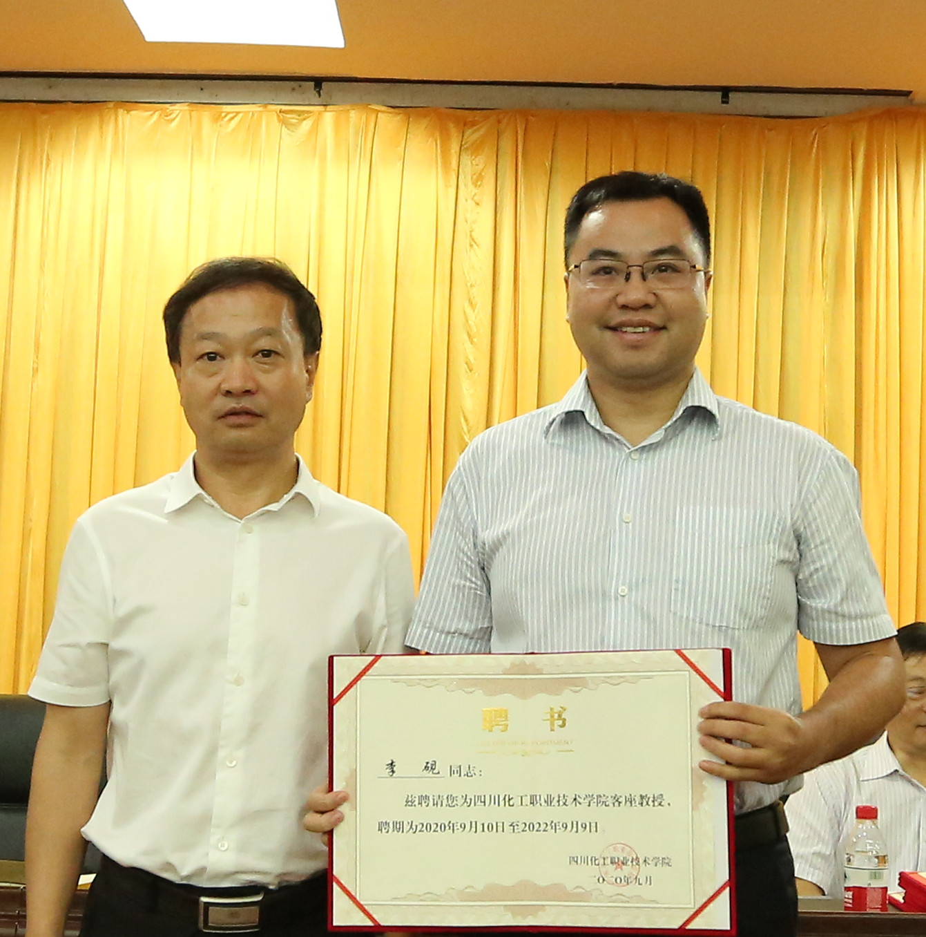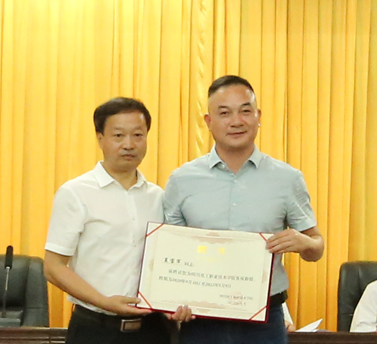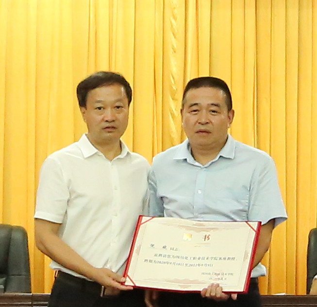 刘志勇书记为学校客座教授颁发了聘书。