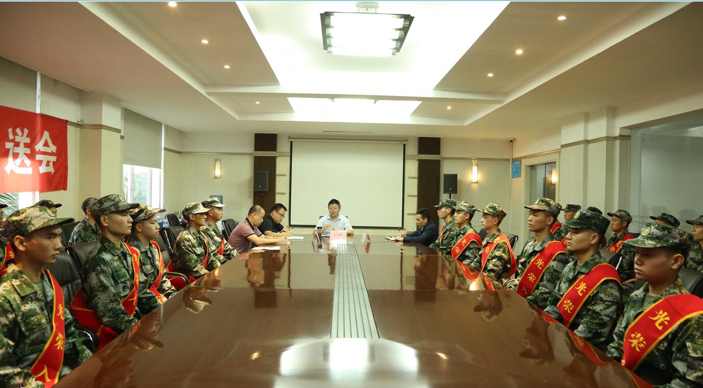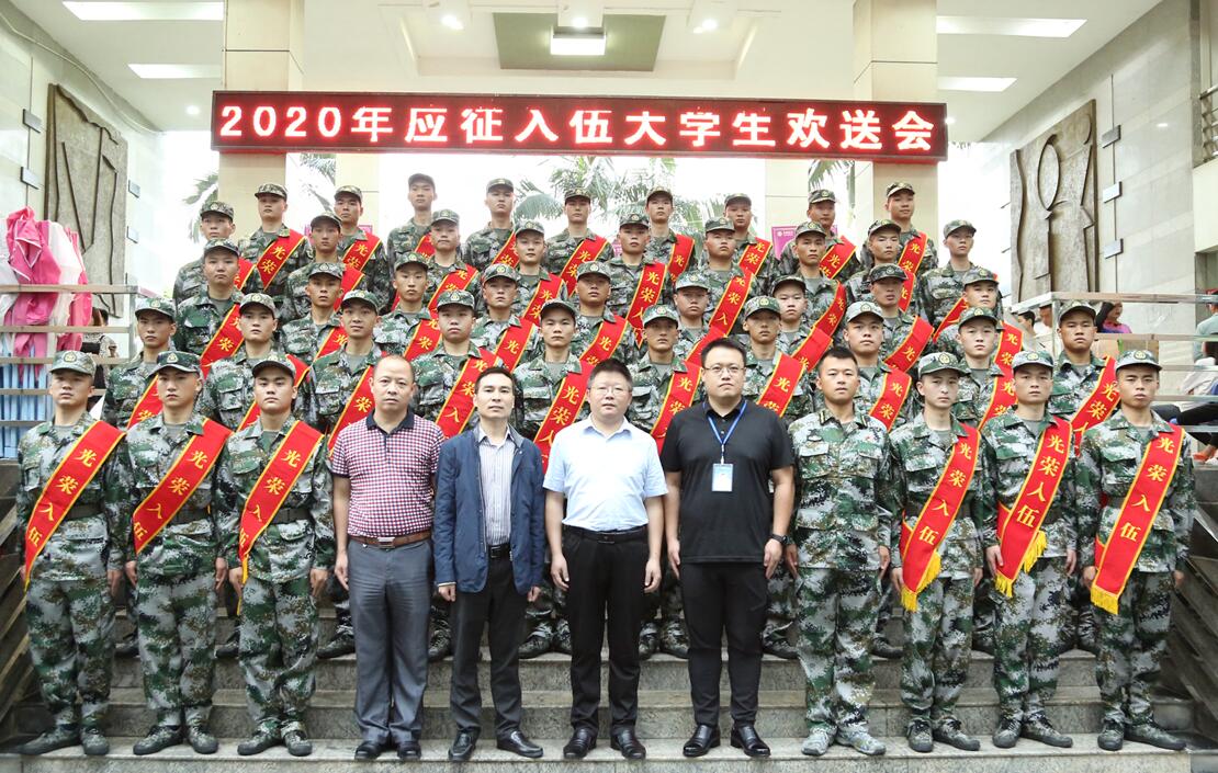 会上,武装干事张辉介绍了我校2020年征兵工作开展情况,学生处苏坤副处长介绍了国家关于应征入伍大学生的资助政策。截止目前,通过层层选拔,我校今年共有四十三名大学生确定参军入伍,其中应届毕业生19人,在校生24人;武警部队26人,海军潜艇2人,坦克部队4人,陆军特战11人。随后,工业自动化1832班学生刘滔代表新兵在会上发言。