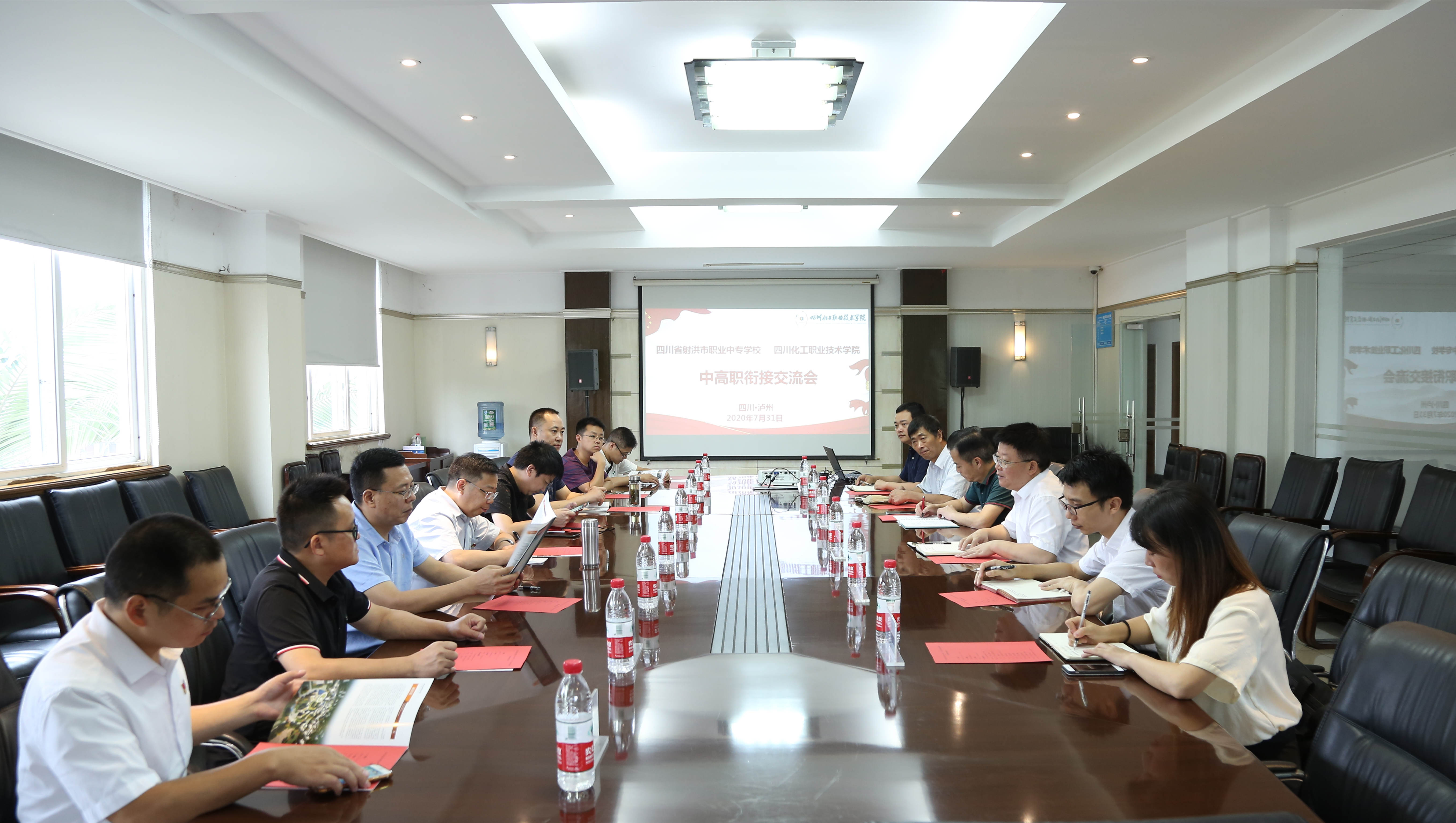 7月31日上午,四川省射洪市职业中专学校余永双副校长率纪委书记杨应见、教务主任胥进、就业和对外合作办主任唐涛等一行8人到我校进行中高职衔接。学校党委委员、副院长文申柳,智能制造学院副院长李林鑫、应用化工学院副院长李晋、应用化工技术专业负责人张华知及遂宁片区招生负责人陈显均老师参加了交流会。会议由招生就业处处长罗伦忠主持。
