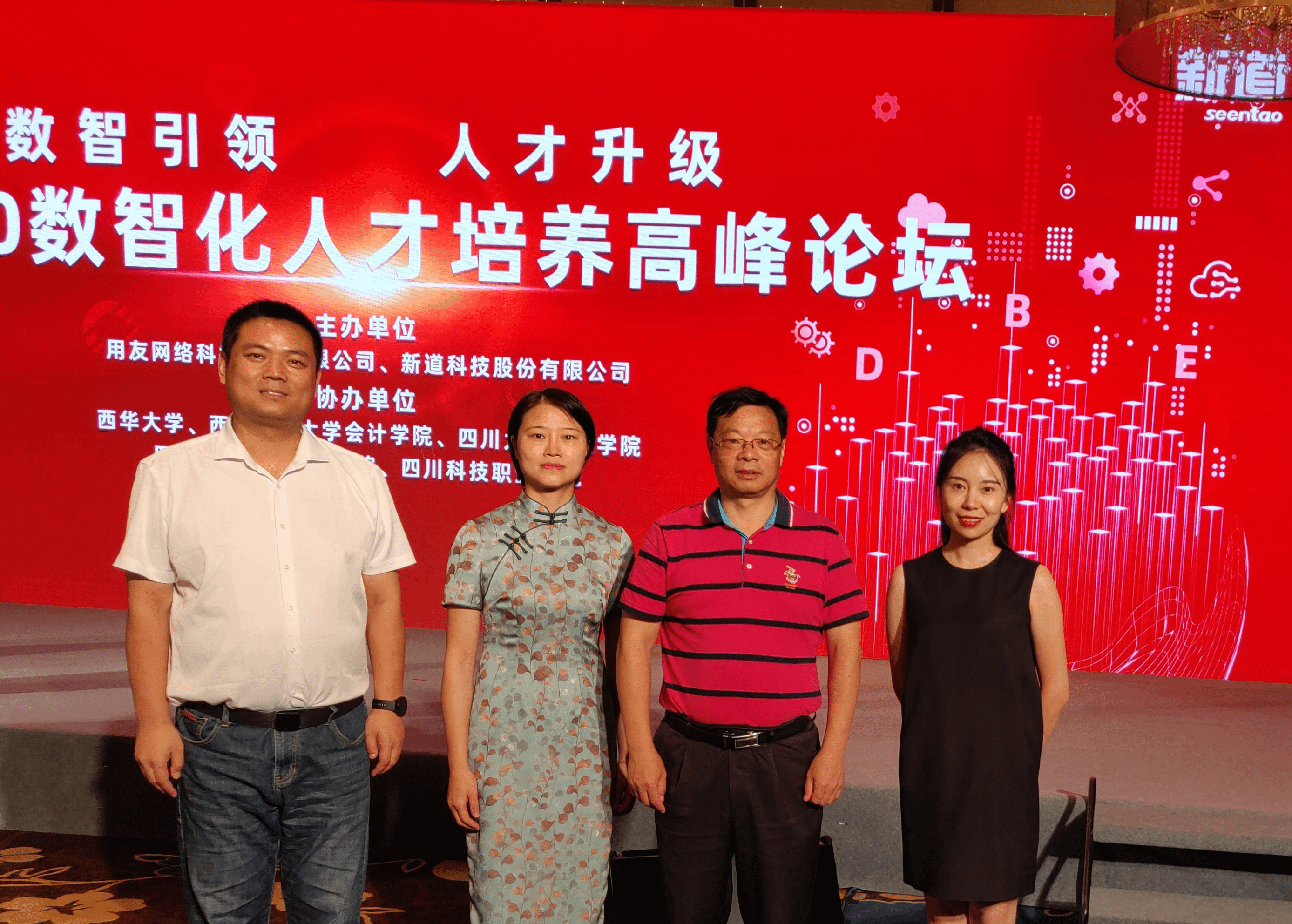 8月20-21日,由用友集团、新道科技股份有限公司举办的2020商业创新大会•西部峰会——数智化人才培养高峰论坛”在成都举行,我校作为用友新道科技公司深入合作的优秀院校受邀参加此次会议。学校王志斌副院长带领经济管理学院张晋副书记、马小洪副院长、会计专业负责人张楠老师等一行4人参加了会议。