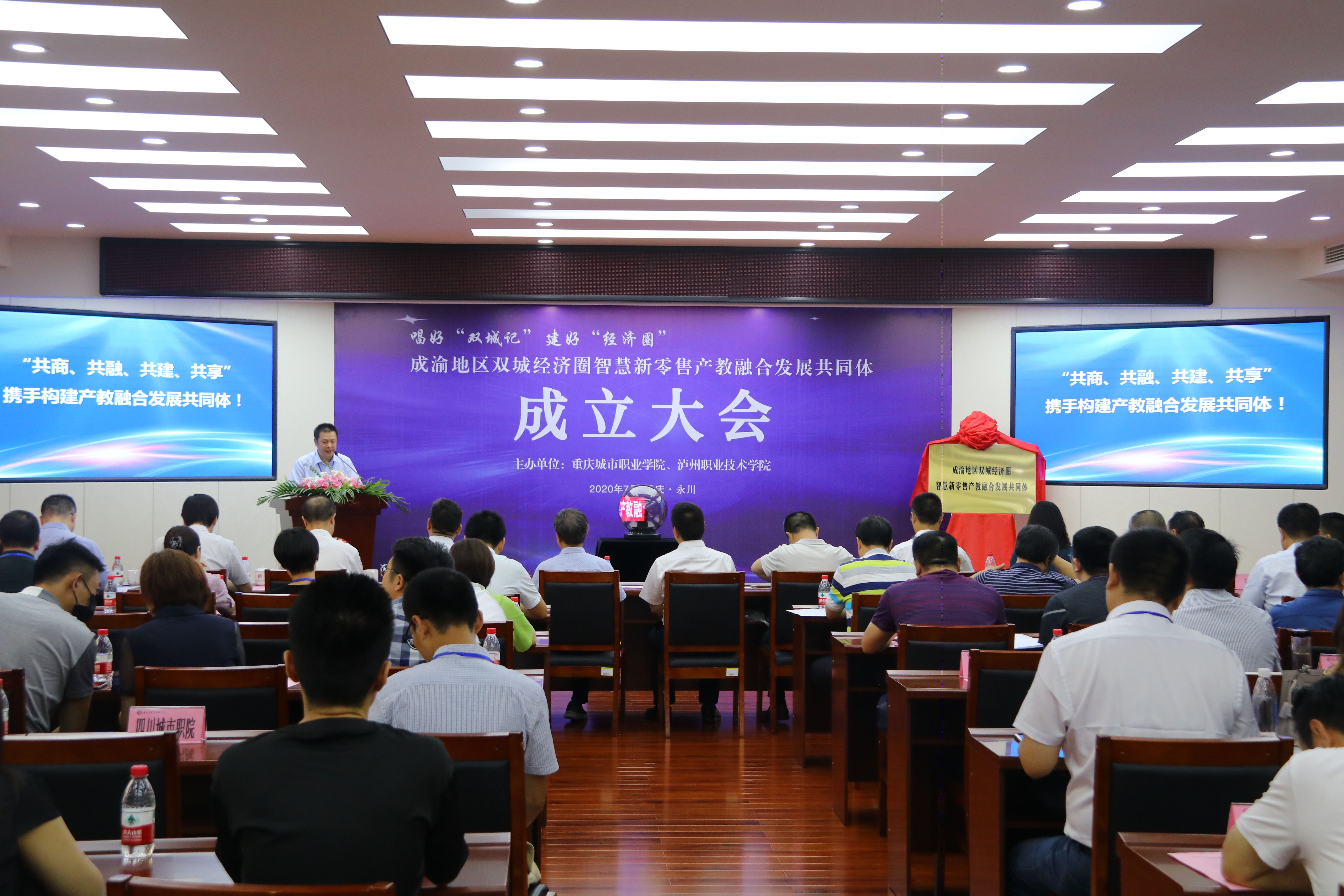 7月17日,由川渝两地高职院校、阿里巴巴、京东等45家企事业单位联合组建的“成渝地区双城经济圈智慧新零售产教融合发展共同体”在重庆城市职业学院揭牌成立,我校作为副理事长单位受邀参加。学校王志斌副院长带领经济管理学院马小洪副院长、会计专业负责人张楠老师参加了成立大会。