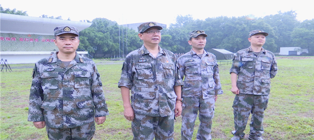 5月21日上午,泸州军分区副司令员汪国荣,江阳区委常委、区人武部政委张道平,区人武部部长万学德现场督导集训工作。