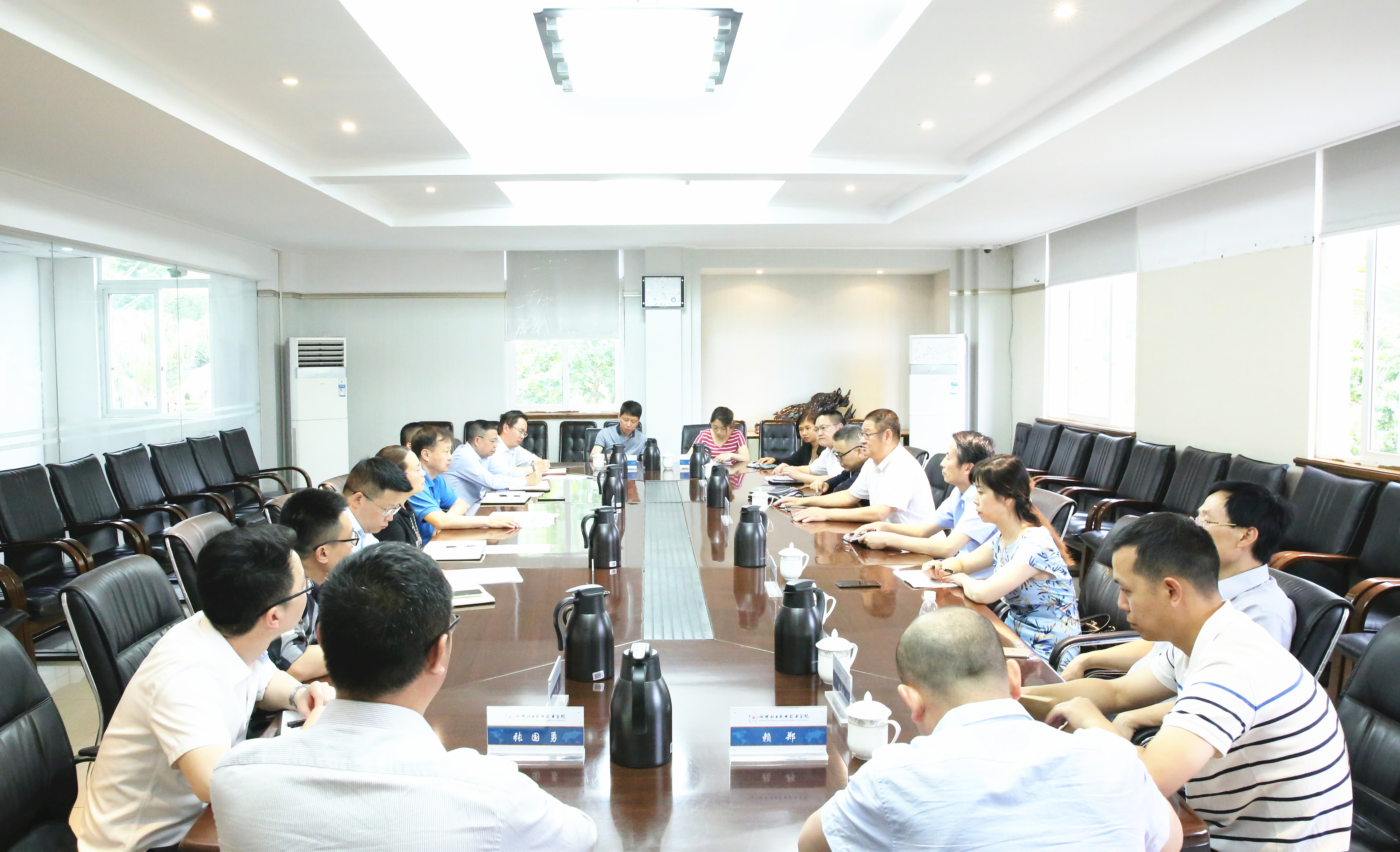 李才均书记一行参观了学院新校区建设情况。在学院行政楼三楼会议室召开座谈会。座谈会上,刘志勇书记对李才均书记一行到院调研表示欢迎,对学院基本情况进行了介绍,并表示学院将“立足泸州、融入四川、拓展全国、走向世界”,争创“双高”计划,持续推进产教融合,着力打造高水平专业群建设和打造双师队伍,提升人才培养质量,进一步服务好全省重大发展战略和地方经济。双方围绕新校区建设、教学管理、科研工作、学生管理、产教融合等情况进行交流。