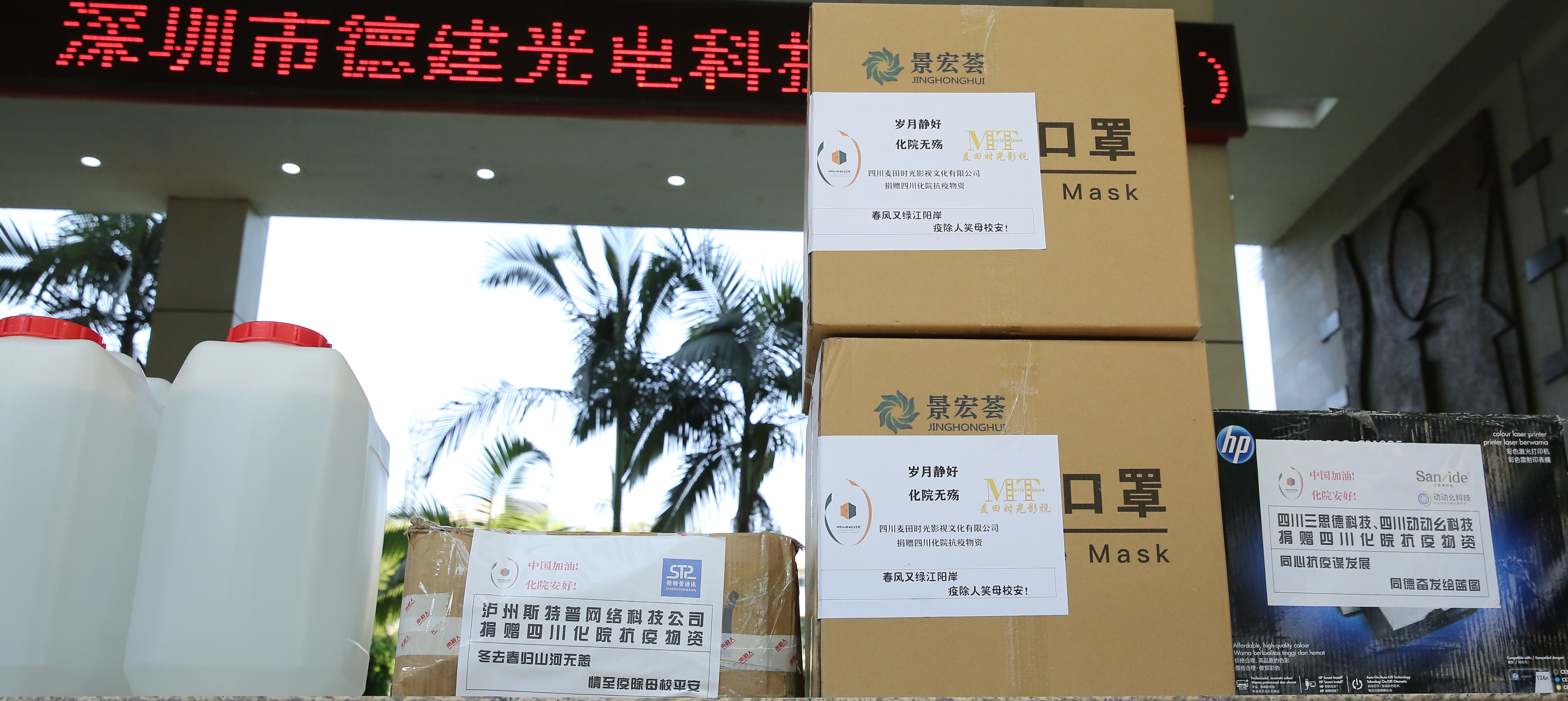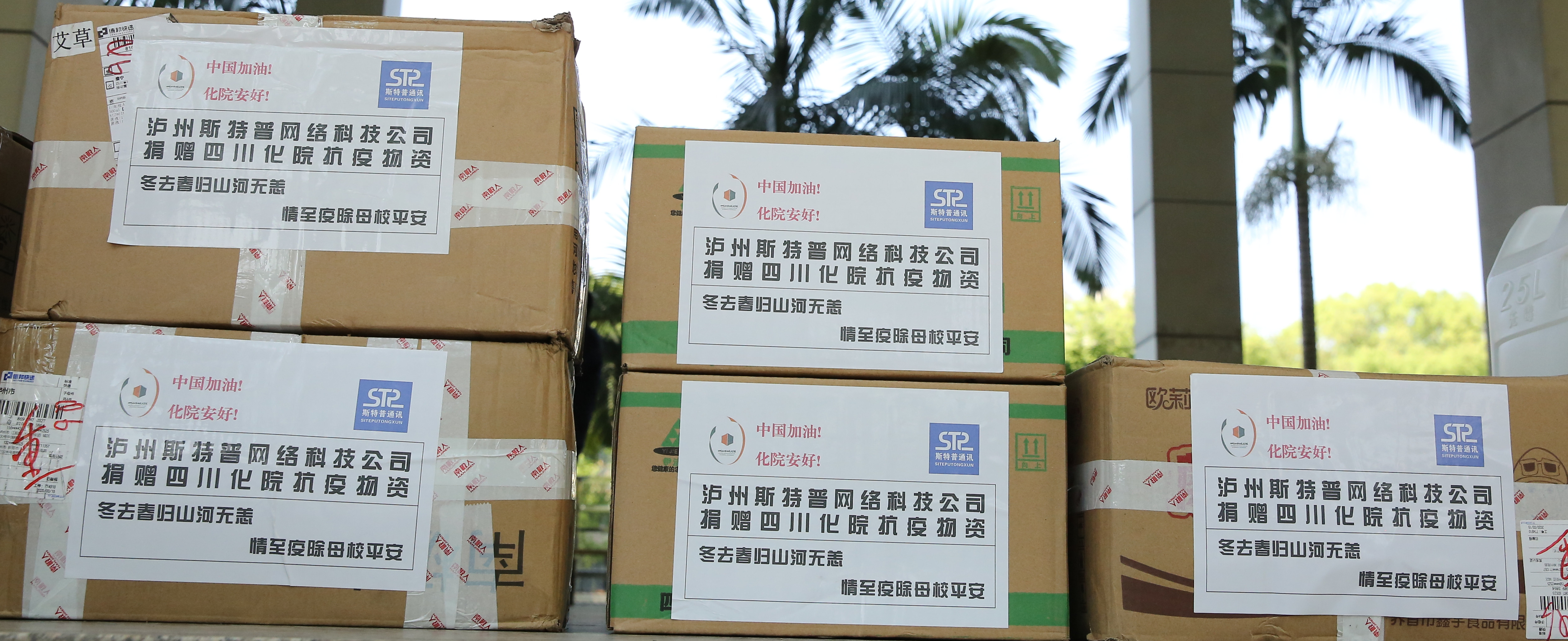 截止至3月25日,泸州宝光医药有限公司向学院捐赠口罩300个,华安财产保险股份有限公司四川分公司向学院捐赠口罩1000个,学院1名教师向学院捐赠免洗洗手消毒液10瓶、酒精消毒液10瓶,万华化学集团股份有限公司向学院捐赠免洗外科手消毒凝胶300瓶、一次性检查手套10000支,四川富土农业发展有限公司向学院捐赠84消毒液80桶(25公斤/桶)、喷雾器二台。