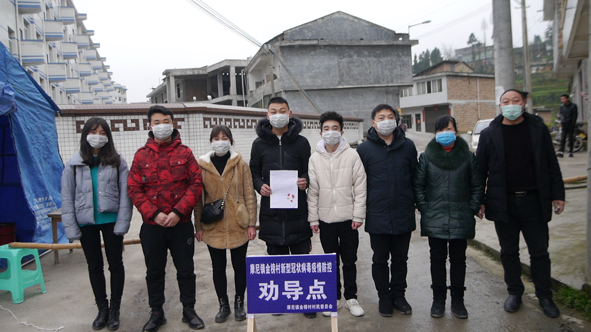 抗疫突击挺在一线。为最大限度保障金榜村“家人”身体健康和生命安全,牟均号召金榜村(返村)在校大学生、退役军人、群众代表和泸州市益生励志协会共同成立金榜村抗疫青年志愿者突击队,负责一线开展防疫宣传、卫生防疫、排查劝返等工作。