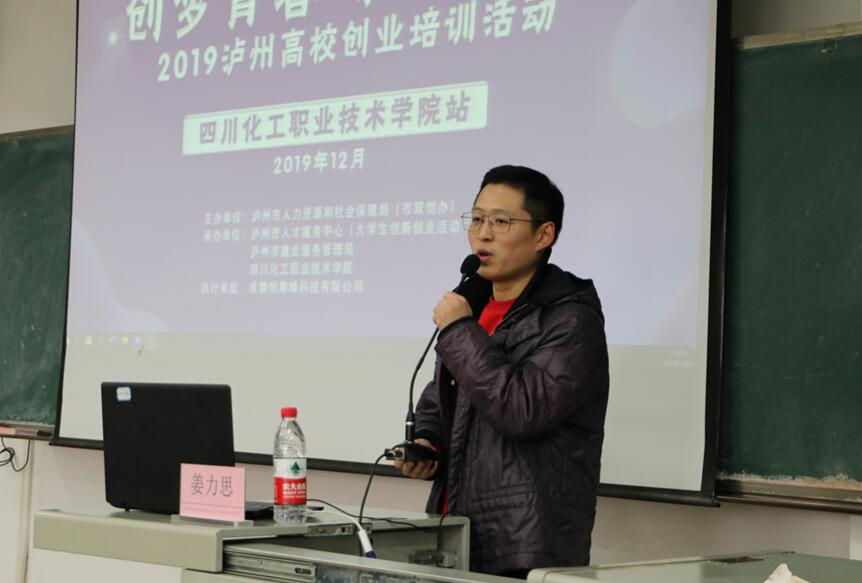 12月4日,由泸州市就业局牵头组织的“创梦青春,泸州起航”创业培训第一期,在四川化工职业技术学院创新创业俱乐部举行。培训采取创业大讲堂、创业沙龙、创业项目一对一巡诊辅导等活动形式,为泸州市大学生打造一个创业实践成长平台,提升大学生就业、创业综合素质及能力,营造泸州高校创业氛围,努力打造他们成为泸州“新时代下的人才新生力量”。