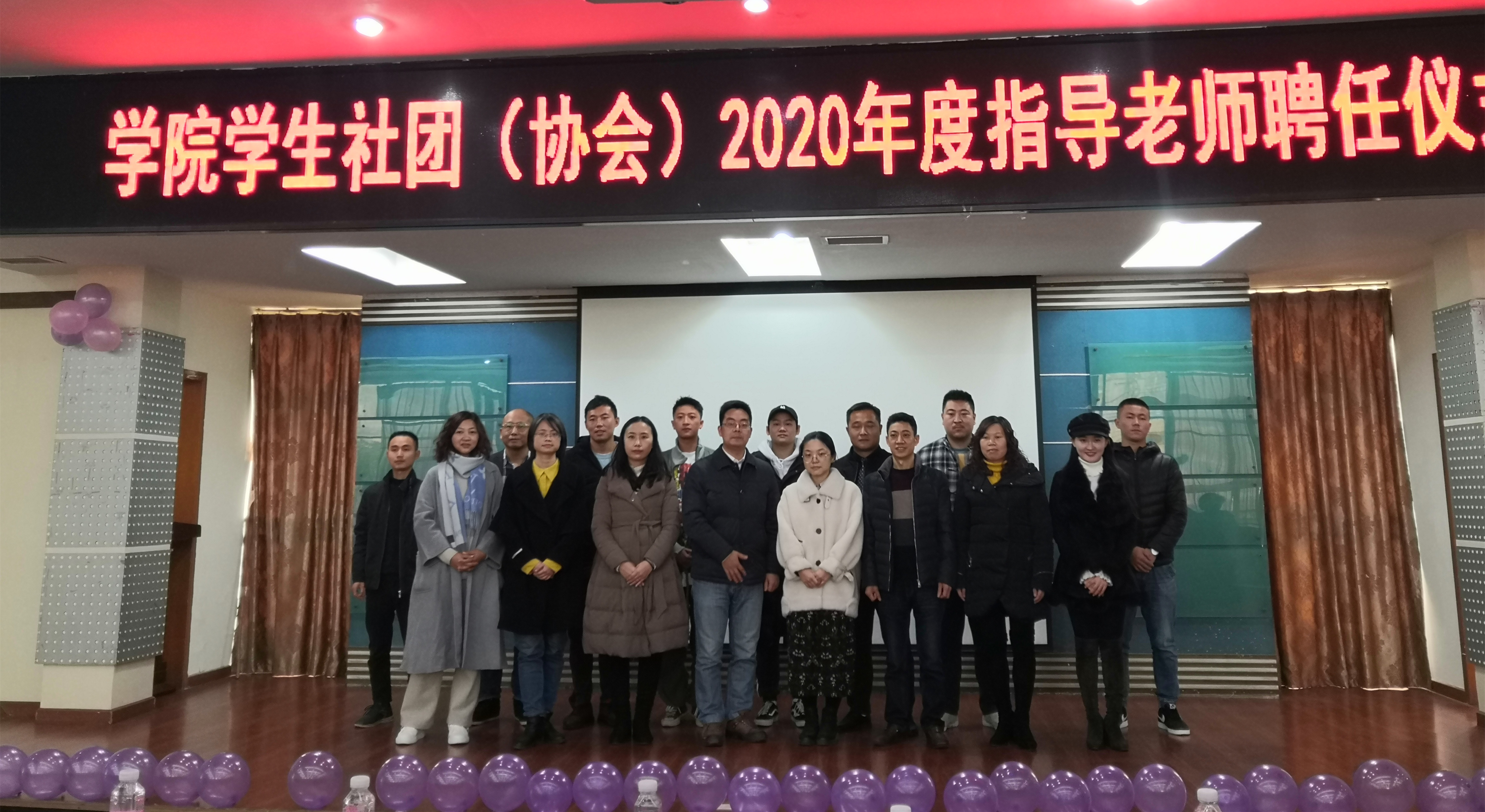 12月12日,院团委在行政楼五楼会议室举行学生社团(协会)2020年度指导老师聘任仪式。院团委张林园书记、社团联合会到场的13位校内外指导老师、社团联合会300余名同学参加仪式。