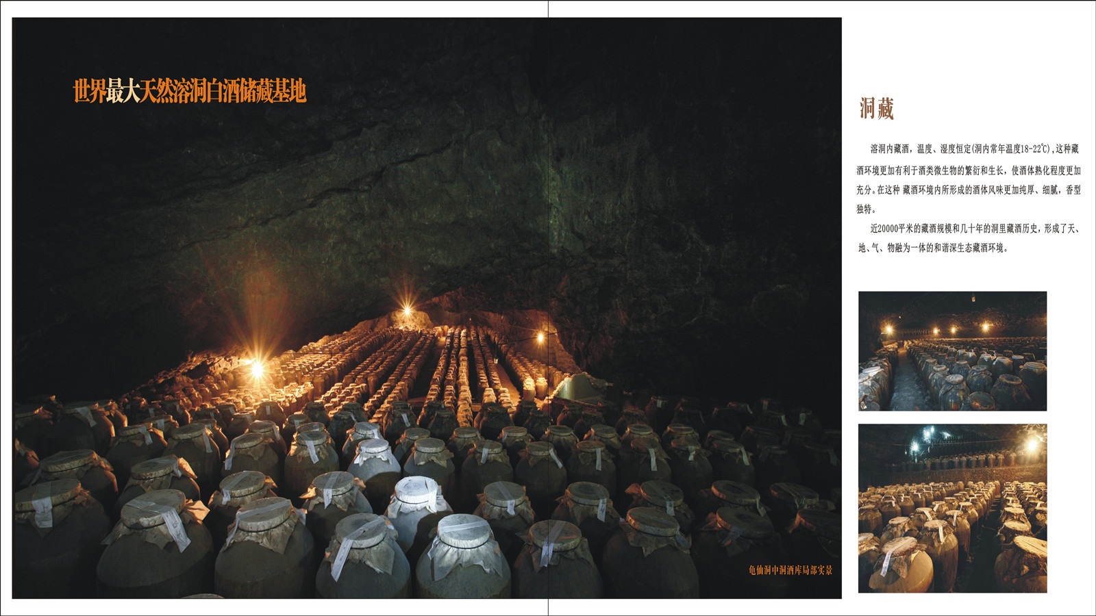 通过考察了解到,贵州洞酿洞藏酒业有限公司、习水县龟仙洞酒厂,开辟“溶洞酿造、溶洞储藏”之先河,是目前全球最大的天然溶洞白酒酿藏基地(于2006年8月荣获基尼斯之最——“最大的天然溶洞白酒酿藏基地”)。龟仙洞内划分为上洞、中洞和下洞,其中上洞和下洞为酿酒车间,每年酿造优质酱香型基酒2000余吨,年产值3亿元。中洞为储酒空间,现存着各种年份老酒和调味酒3000余吨,基酒储存量达到10000吨。目前龟仙洞酒旅一体化建设项目引入了步长集团战略性投资30亿元,首期到位资金3.6亿元,将于2021年全面建成投运。