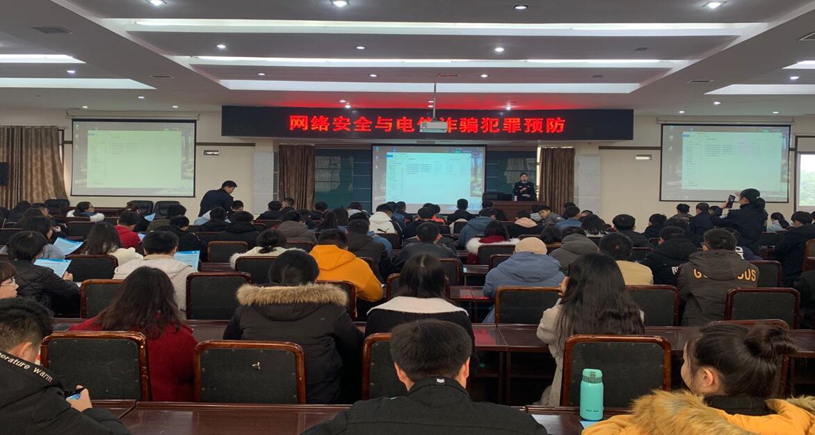 为进一步提高我院学生识别和防范网络电信诈骗的能力,保护学生人身和财产安全,维护校园稳定,11月27日下午15时,学院保卫处在行政楼五楼会议厅开展以“提高安全意识,防范电信诈骗”为主题的专题讲座,讲座由泸州市公安局江阳区公安分局龙透关派出所教导员陶警官主讲,全院各班班长、团支书、学生代表共计200余人聆听了讲座。