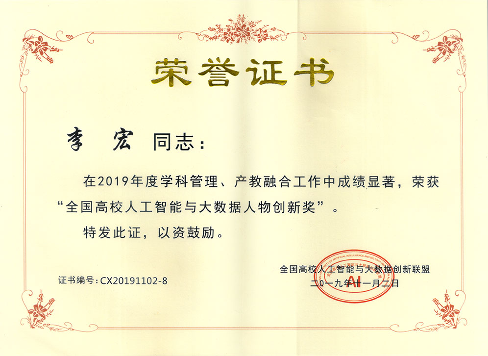 2019年11月2日,由全国高校人工智能与大数据创新联盟主办的“2019第二届全国高校人工智能大数据教育教学创新论坛”在北京成功举办。我院信息工程系李宏主任荣获“全国高校人工智能与大数据人物创新奖”,此奖项表彰了该同志在我院大数据技术与应用专业和虚拟现实技术应用专业的校企合作、校内/校外实训基地建设等专业建设方面的工作中取得的突出成效。