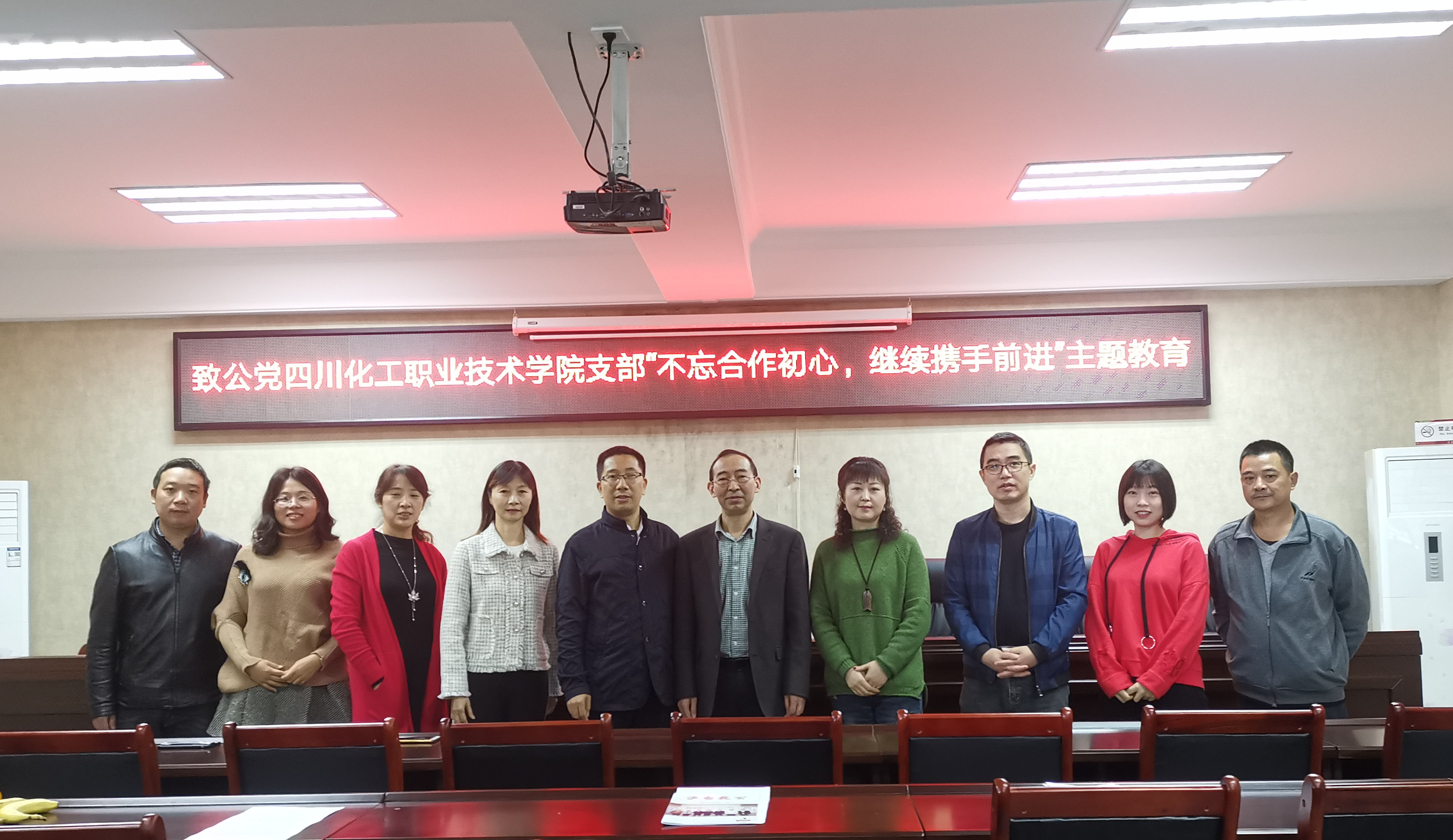 11月9日上午,致公党四川化工职业技术学院支部开展了“不忘合作初心、继续携手前进”主题教育。四川化工职业技术学院党委办公室主任叶昌伦、致公党泸州市委驻会副主委殷君国、致公党泸州市委办公室主任李位刚等参加了本次活动。