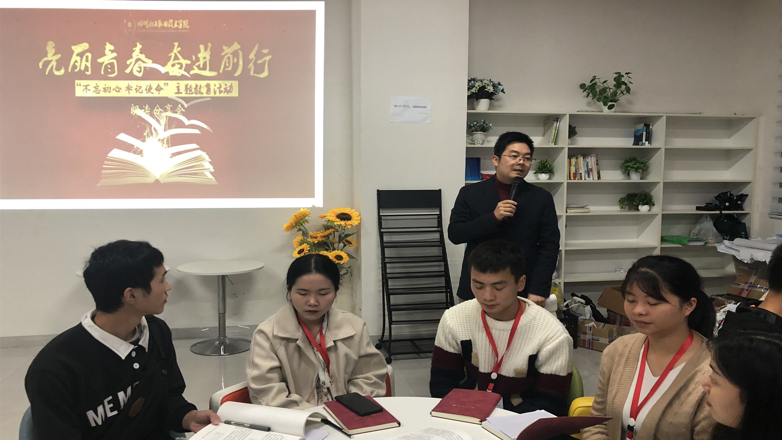 11月11日,学院团委在学生事务大厅举行“不忘初心、牢记使命”主题教育理论朗读分享会,团委老师、各系团总支书记、青年教工团支部老师和院系骨干学生团学干部参加了朗读分享会,分享会由团委江劲老师主持。