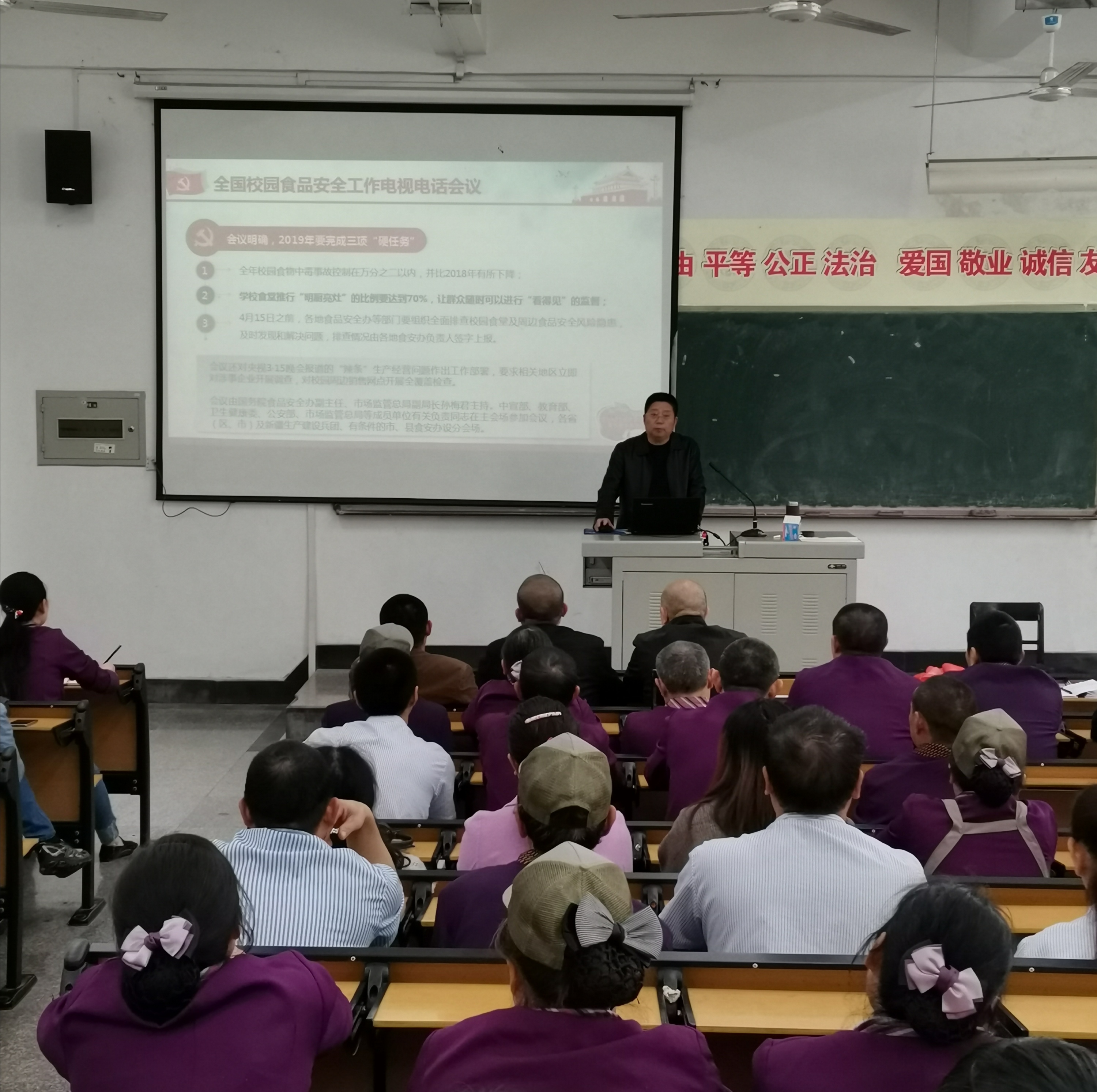 为进一步增强我院食堂从业人员食品安全意识,提高后勤从业人员的工作主动性,近日,学院后勤服务处在综合实训楼A302会议室举行了2019秋季食品安全知识培训活动,培训由后勤生活中心负责人主持,后勤服务处处长刘真如参加会议,后勤服务处生活中心全体员工共计100余人参加此次培训。