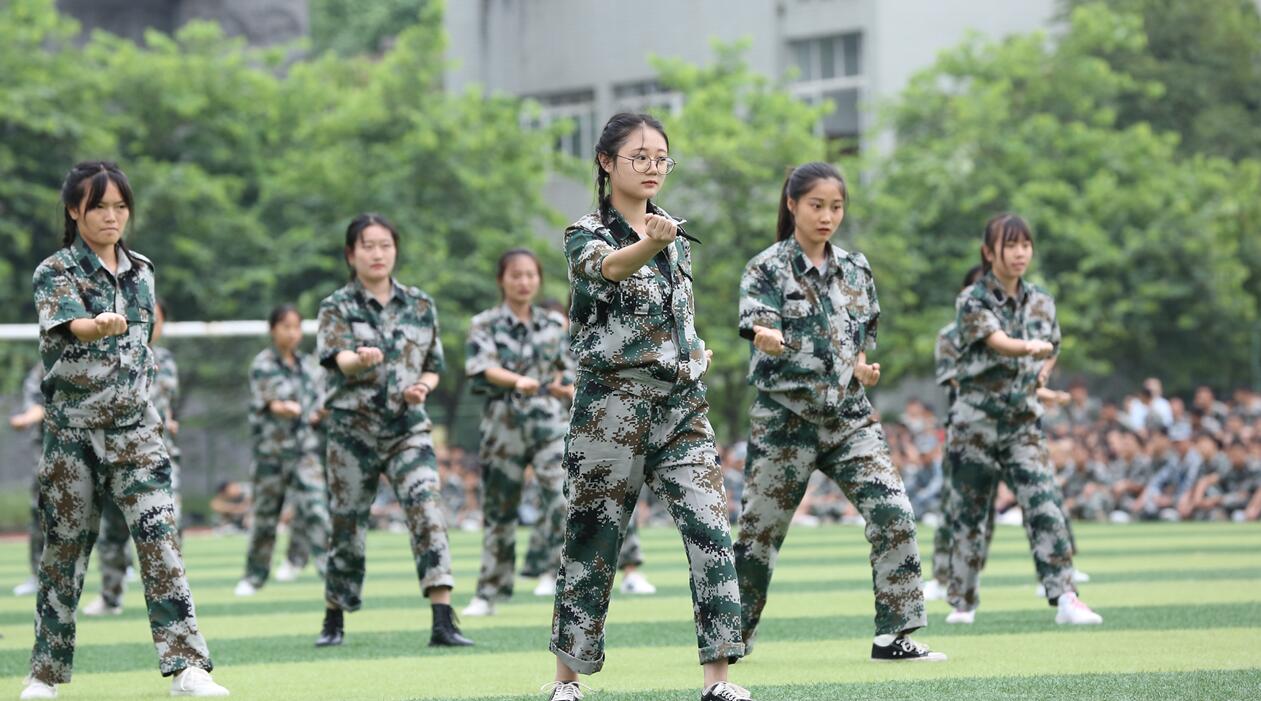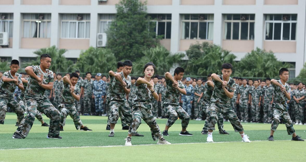 分列式表演结束后,进行了方队表演。表演军体拳的方队,步伐整齐,臂膀和拳头有力,阵势训练有素,尽显阳刚之气;表演匕首操的女生们神采奕奕、身形矫健,完美展现了巾帼不让须眉的精神面貌;最后,全体新生齐唱《歌唱祖国》,共同庆祝中华人民共和国成立70周年。