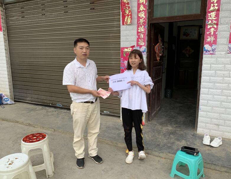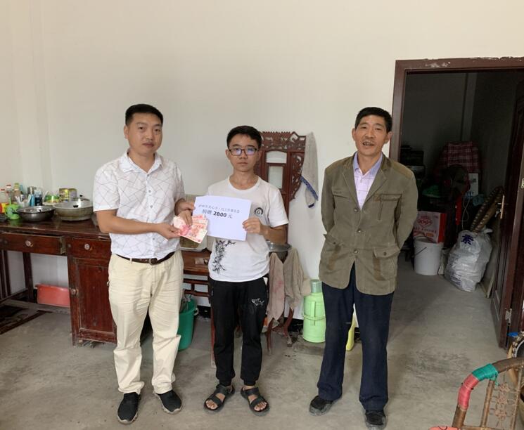 金榜村四社残疾学子曹雨,就读于叙永县一中,她是一个天性善良、活泼开朗的女孩。但在她9岁那年不幸患上了一种罕见的疾病:硬皮病。为了给女儿治病,她的父母多方筹措治病经费,不断奔波于各大医院,想方设法寻找治病良方,曹雨的病情最终才得以控制。虽然遭遇了命运的不公,但是坚强的曹雨没有向命运低头,在积极配合医院治疗的同时仍不忘学业,有志者事竟成,身残志坚的她通过自己不懈的努力和超越常人的付出,在今年高考中取得了优异的成绩,考上了宜宾学院。金榜村第一书记牟均代表泸州市关工委分别向陈维捐赠了助学基金人民币2800元,向曹雨捐赠了助学基金人民币3000元。两位困难优秀学子感激关工委和社会各界一直以来的关心和帮助,表示自己一定会更加勤奋地学习,将来做一个对社会有用的人。