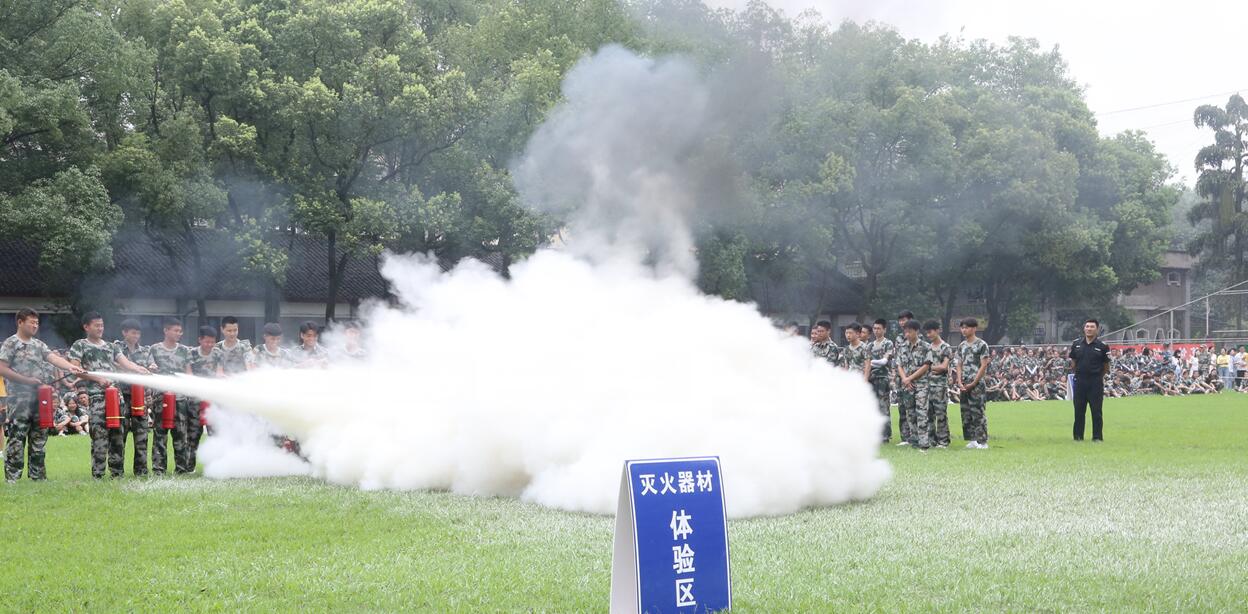 消防疏散演练结束后,由消防二中队杨副队长向同学们开展了消防安全教育,并示范了干粉灭火器的使用程序和方法,组织同学们进行现场灭火演练,让大家熟练掌握灭火器的使用方法及要领。随后,泸州七进消防安全宣传中心教官对全体新生开展安全培训,泸州市消防支队消防宣传车同期在食堂门口开展消防安全宣传教育。