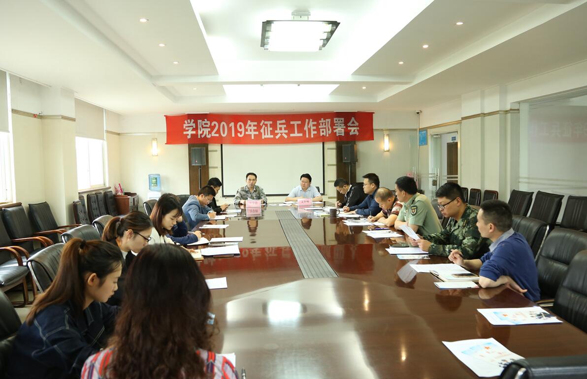 5月21日上午9点,学院2019年征兵工作部署会在行政楼三楼会议室召开。学院文申柳副院长、江阳区人民武装部万学德部长、学生处、保卫处(人民武装部)以及各系部副书记、各系部干事参加了会议。会议由保卫处副处长张波主持。