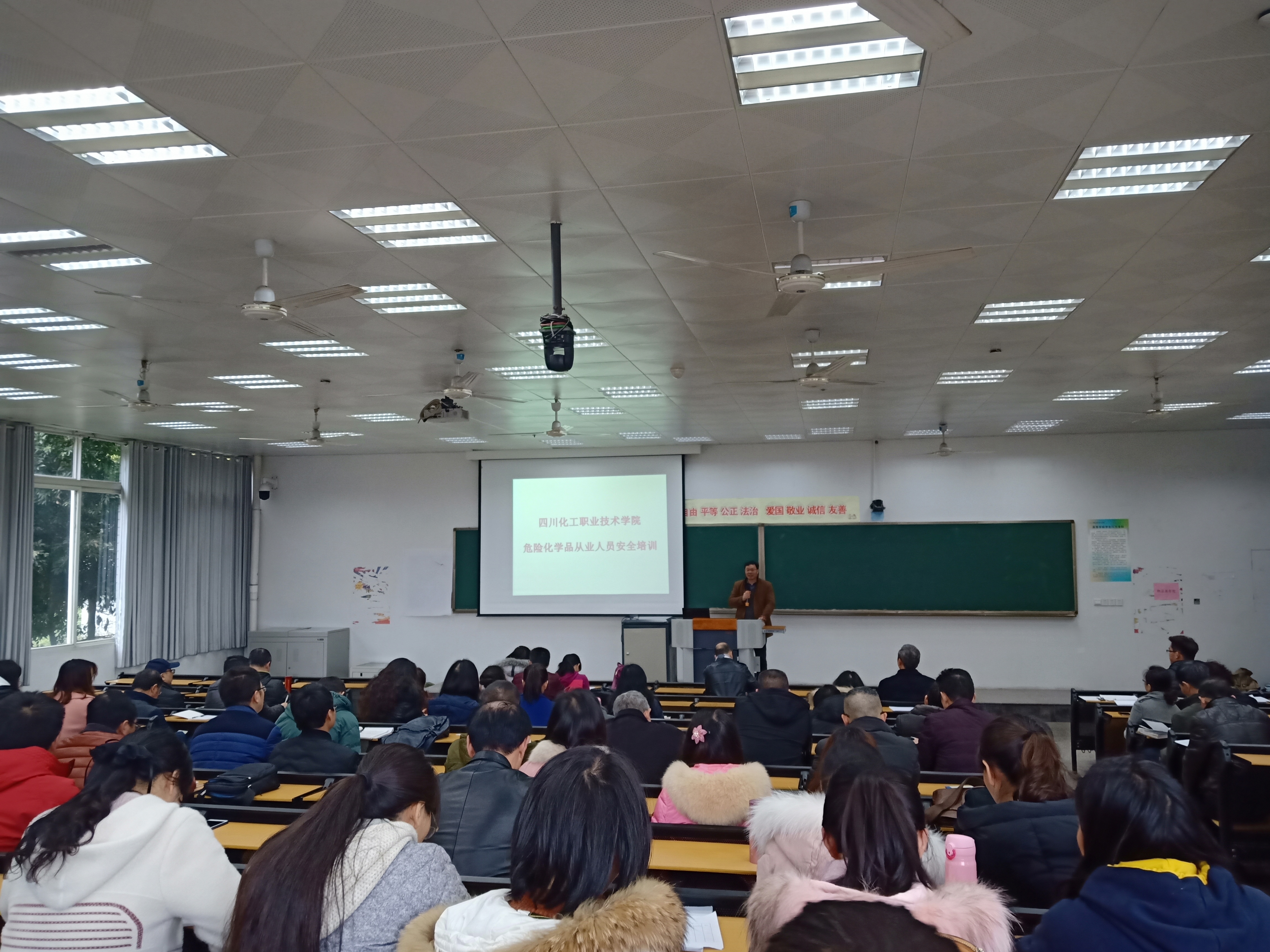 2月25日,学院安全培训中心组织化工系、制环系涉及危险化学品教学及管理工作的教师开展为期一周的危险化学品从业人员安全培训。开班仪式在我院实A208举行,学院王志斌副院长出席开班仪式并讲话,化工系、制环系所有领导和教师共计70余人参加培训。培训由制药与环境工程系副主任苏翔主持。