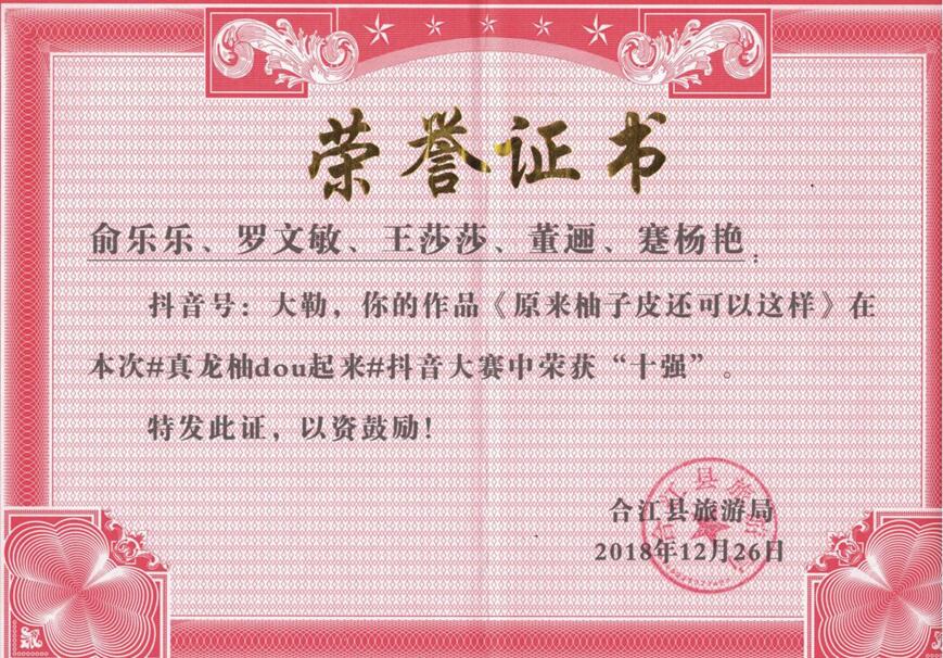此次比赛通过借助抖音短视频平台,向社会各界发起#真龙柚dou起来#抖音挑战赛,作品通过正能量的事件、创意舞蹈、风趣幽默的小故事等,展现积极向上的精神,迎接的美好生活。