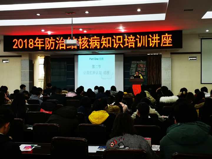 2018年11月21日下午,学院后勤服务处下属卫生所与健康志愿者协会邀请了江阳区疾控中心结核病专家黄吉容开展防治结核病专题讲座,学院大一大二各班学生代表聆听了讲座。