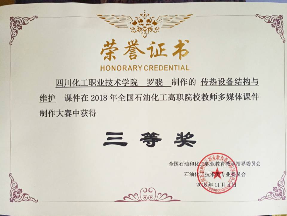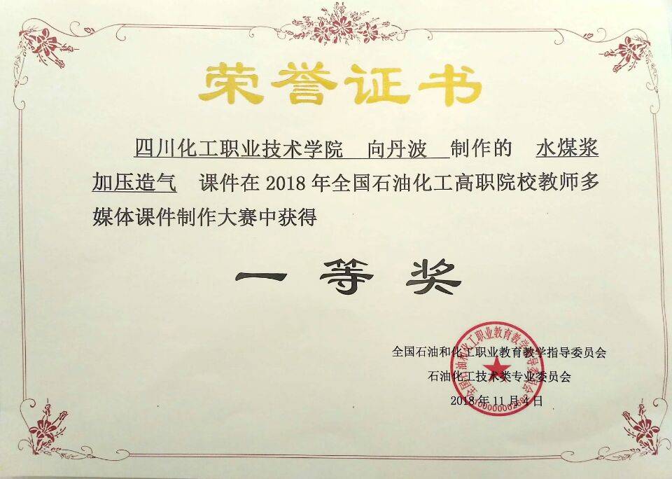 大会还举行了第一届石化专委会多媒体课件大赛颁奖仪式,我院向丹波老师制作的《水煤浆加压造气》课件获得一等奖,罗骁老师制作的《传热设备结构与维护》课件获得三等奖。