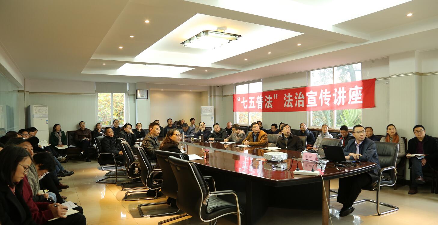 2018年11月16日下午,学院法规室在行政楼三楼会议室举办了“七五”普法法治宣传讲座。学院全体中层及以上领导干部到场聆听, 讲座由学院党委副书记、纪委书记、工会主席陈淑娟同志主持。