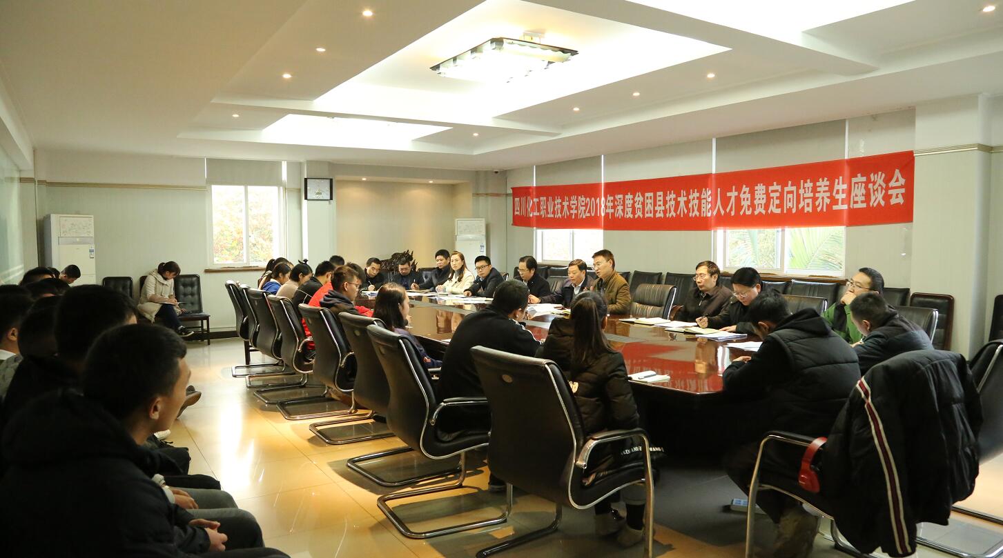 为深入贯彻党的十九大精神,全面落实省委、省政府脱贫攻坚决策部署,切实做好学院2018年深度贫困县技术技能人才免费定向培养生相关工作,学院于11月21日在行政楼三楼会议室召开2018年深度贫困县技术技能人才免费定向培养生,参加座谈会的有学院党委副书记(主持党委工作)、院长杨宗伟教授,副院长苏建智、王志斌、文申柳,招生就业处、教务处、学生处、扶贫办、信息工程系等部门负责人以及测绘1832班辅导员和全体同学。会议由学生处副处长苏坤主持。
