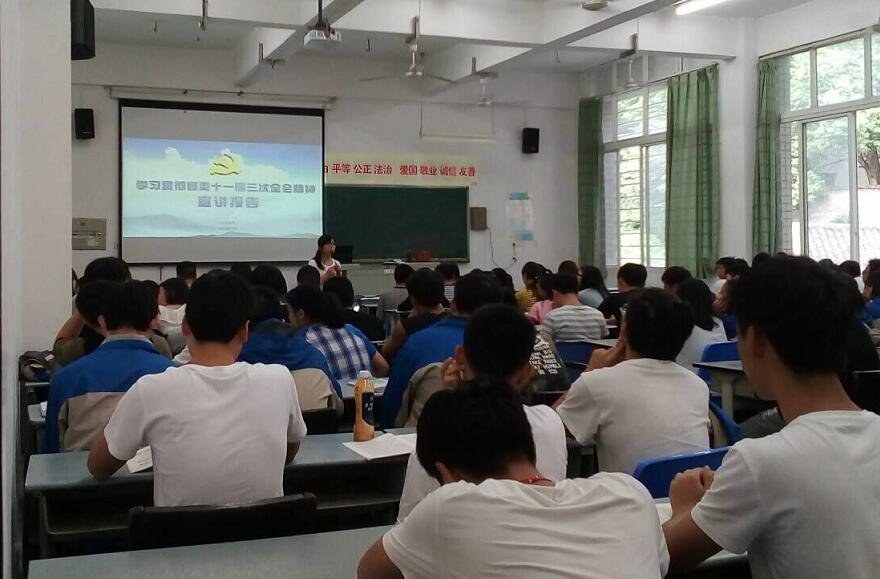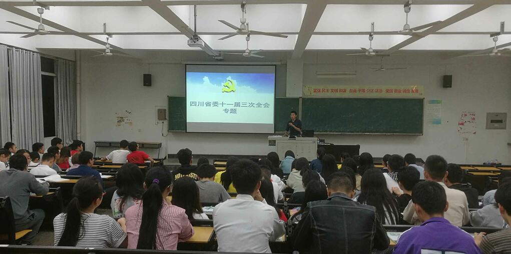 专题教学最后借用省委书记彭清华寄语青年学子“五个希望”——希望大家秉持报国之心,树立振兴中华的远大志向;秉持崇学之心,练就堪当重任的过硬本领;秉持向上之心,坚守拼搏进取的人生追求;秉持修德之心,锤炼律己向善的高尚品质;秉持笃实之心,铸就脚踏实地的干事精神,希望同学们把本次专题教学作为深入学习全会精神的新起点,进一步深入学习领会全会精神,真正把全会精神内化于心,外化于行,转化为促进自身成长的强大动力和实际行动,积极为我省实施“一干多支、五区协同” “四向拓展、全域开放”战略、建设现代产业体系、推动治蜀兴川再上新台阶贡献青春力量。