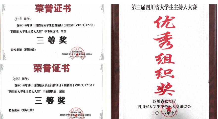 10月13日,经过紧张的角逐,由四川省教育厅主办的第三届四川省大学生主持人大赛复赛在西华师范大学音乐厅圆满落下帷幕。来自西南石油大学、四川师范大学、成都大学、四川大学锦城学院等全省27所本、专科院校,共120名选手进入了复赛。我院经济管理系学生李俊、肖顺之在酒店与素质训练教研室王旭老师的带领下,通过初赛挺进了复赛。