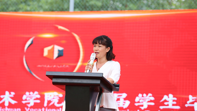 经济管理系陈秀芬副教授作为教师代表发言。陈老师分享了三年来与同学们相处的美好记忆,建议同学们走出校园以后要学会做人、不断学习、砥砺前行。