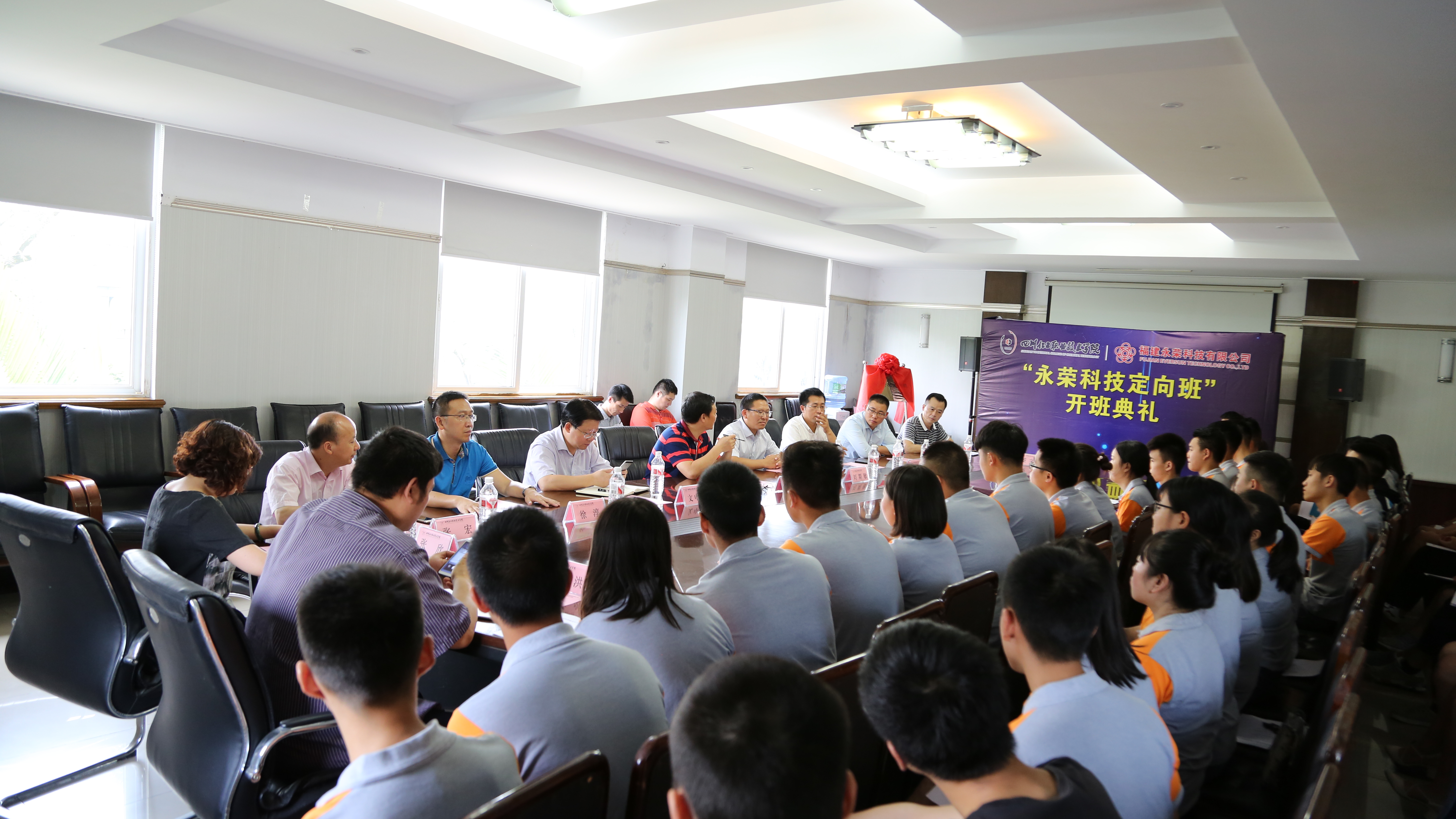仪式中,王志斌副院长、刘期敏副总经理共同为“永荣科技定向班”揭牌,参会人员热烈的掌声将开班仪式推向了高潮。