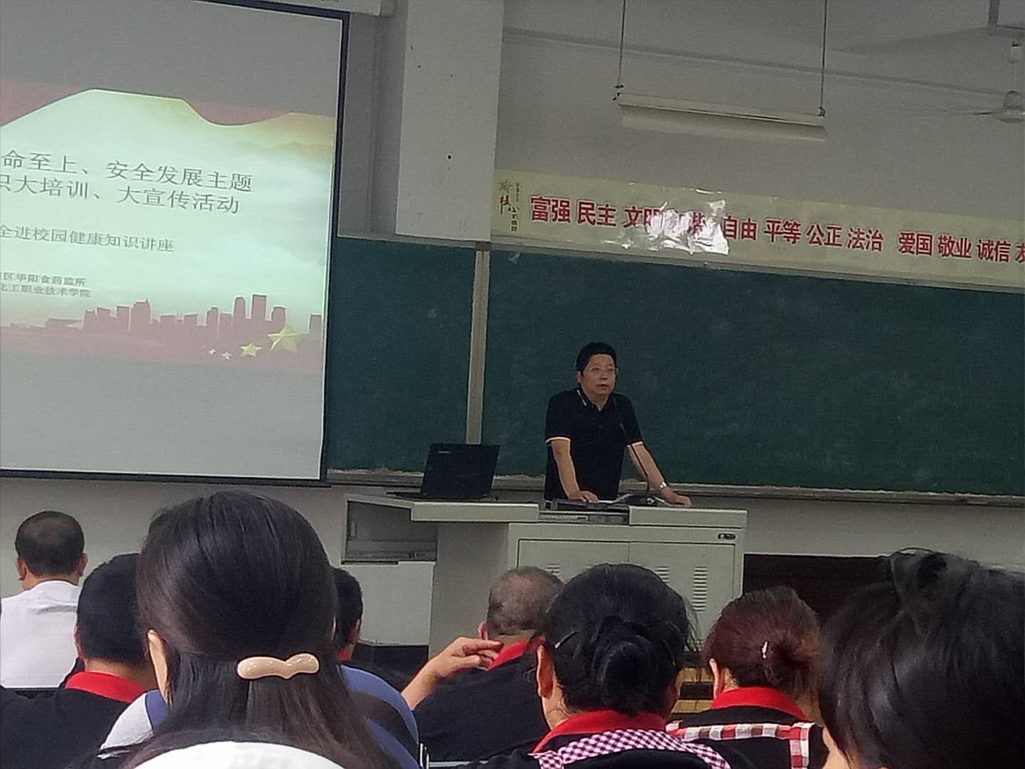 江阳区华阳食品药品监督所李群所长作了题为“抓住关键 守住底线 共同维护学校食品安全”的知识宣讲,李所长从食品安全对人类健康的重要性、餐饮服务食品安全形势、学校食堂规范化管理、学校食品安全风险点、学校食堂餐饮质量提升等五个方面进行了详细讲解。