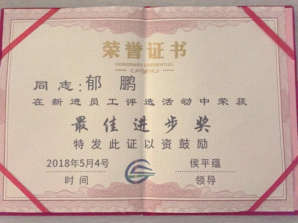 近日,从成都长客新筑轨道交通装备有限公司传来好消息,我院化工装备技术专业15级顶岗实习学生郁鹏在公司新进员工评选活动中荣获“最佳进步奖”,受到企业表彰奖励。