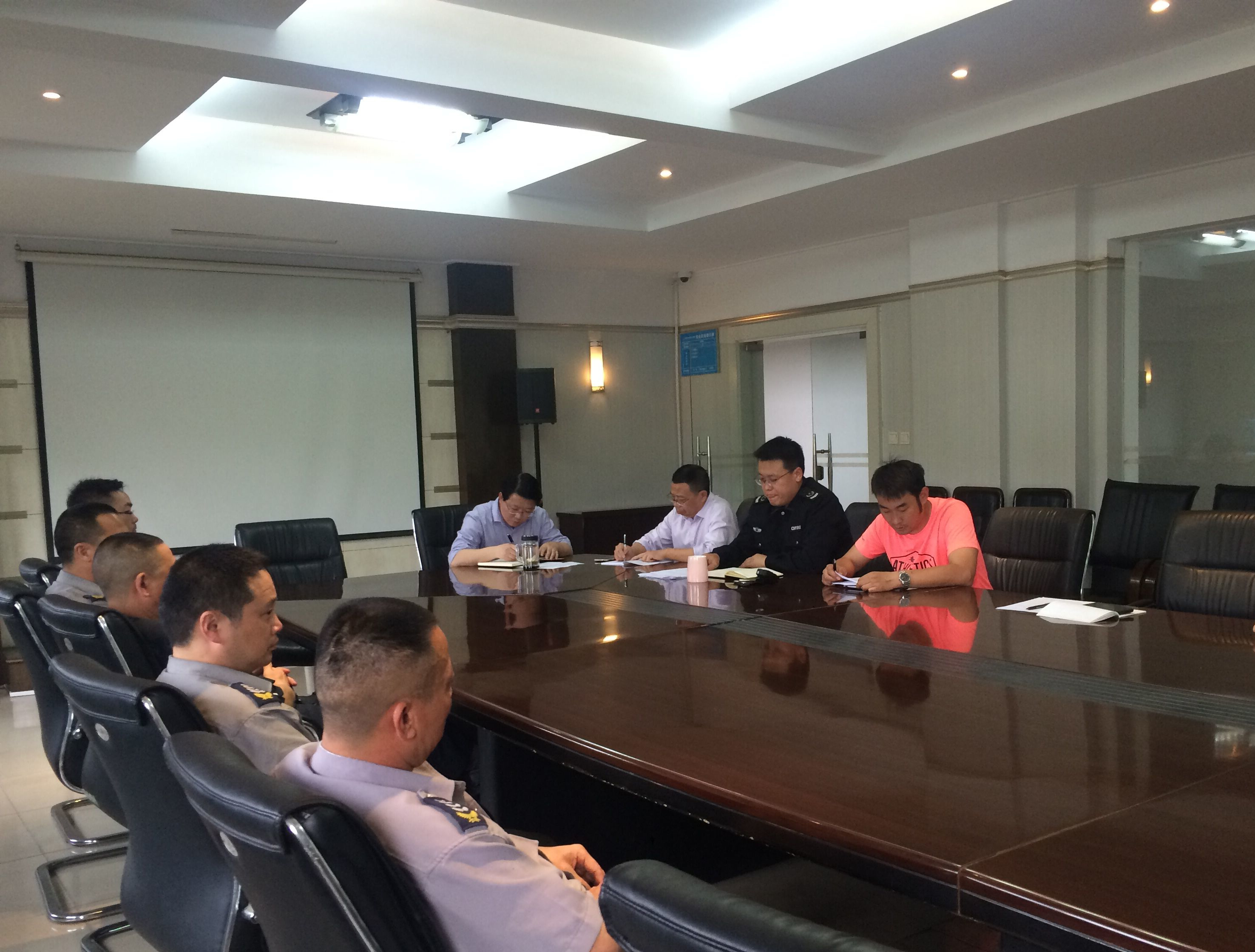 最后,文申柳副院长就学院安全工作作出指示,对保卫处工作提出了四点要求,第一,加强保安人员劳动纪律,加强队伍建设,增强组织纪律性,做好规范执勤和安全防范工作,展示窗口单位的良好形象。第二,树立良好的形象,保安人员要规范日常工作礼仪。注意礼节礼貌、规范着装,从外在形象上下功夫,从自身做起,用个人气质感染身边的师生,给全校师生及外来人员提供良好的形象;第三,在突发事件处置中,保安人员应尽职尽责,在校园突发事件发生时,保安人员是第一个达到现场的人员,这就要求保安人员尽职履职,力争将突发事件消灭在萌芽状态;第四,加强保卫处工作协作,保卫处工作繁复又面临众多突发类任务,各岗位工作内容互有交叉,保卫处工作人员要相互配合,齐心协力把工作做好。