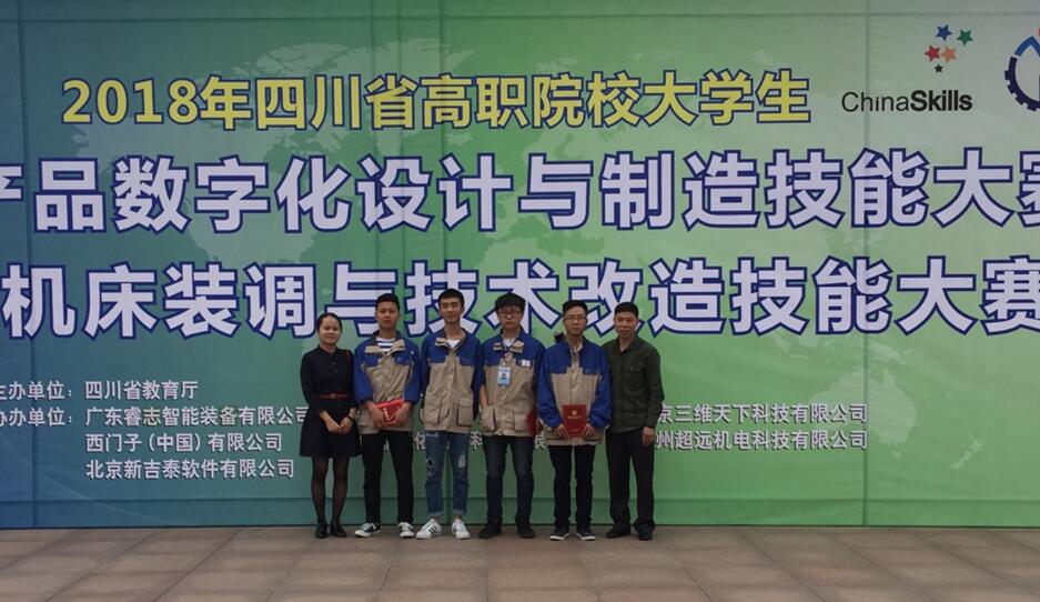 4月10日至12日,由四川省教育厅主办的“2018年四川省高职院校技能大赛—工业产品数字化设计与制造大赛”在成都航空职业技术学院隆重举行,来自全省15所高职高专院校的25支队伍参加了此次比赛。经过激烈角逐,我院学生在此次大赛中喜获三等奖。