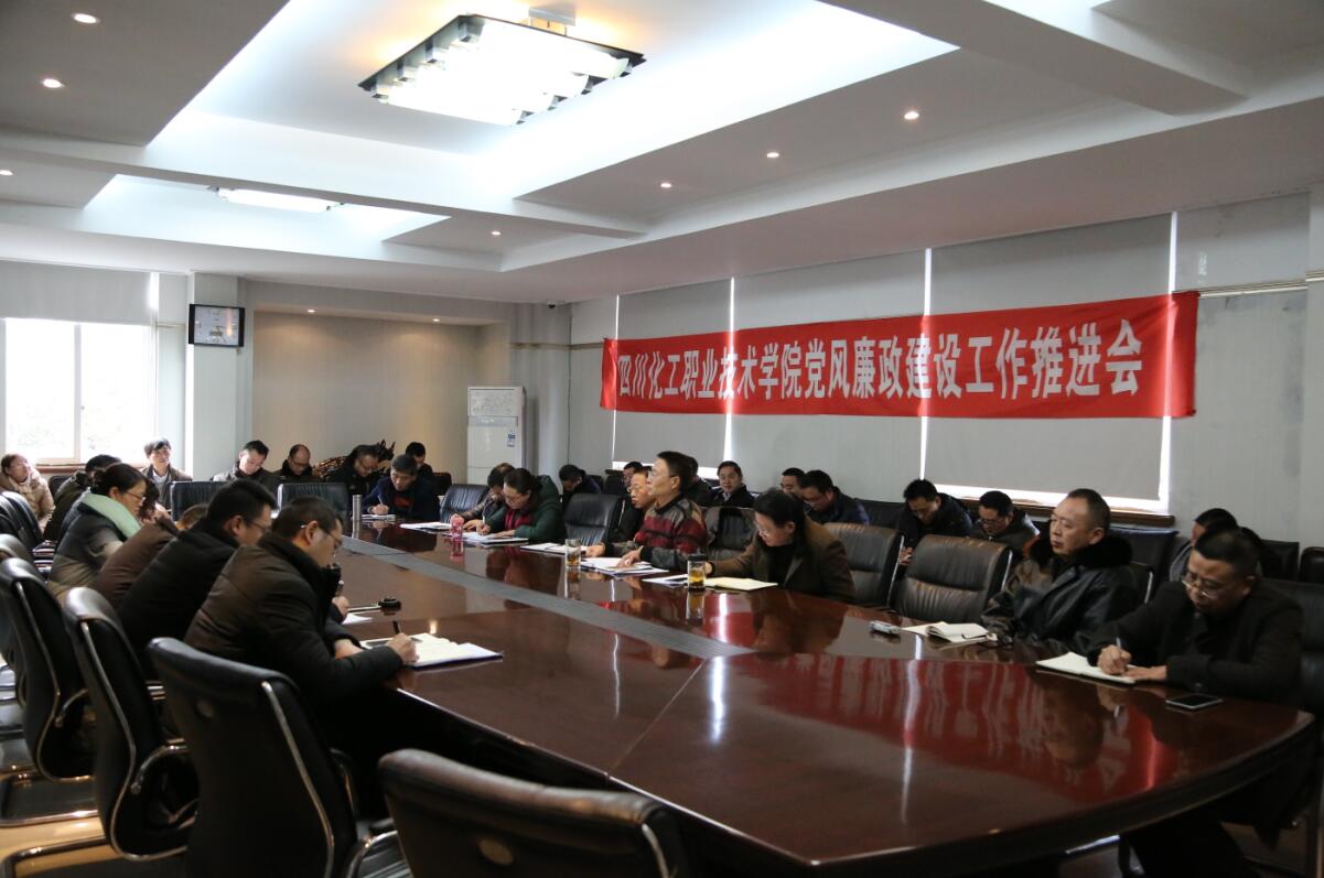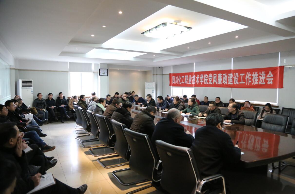 2018年1月8日下午,四川化工职业技术学院党风廉政建设工作推进会在行政楼三楼会议室召开。中层及以上干部(含中干助理)、学院纪委委员、各党总支(直属支部)纪检委员、纪委办工作人员参加会议。会议由学院党委副书记、纪委书记陈淑娟主持。