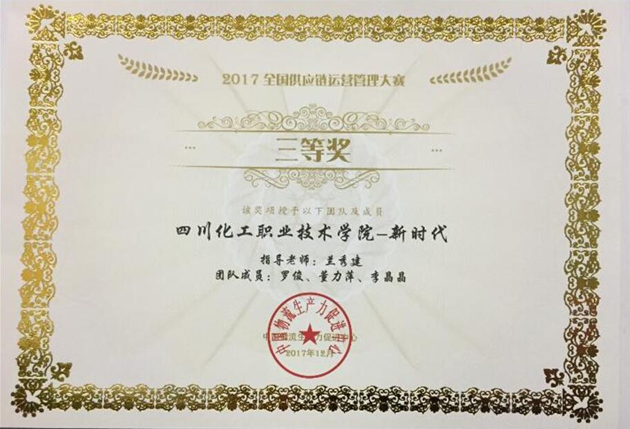 近日,由中国物流生产力促进中心和厦门市物流与供应链学会联合主办的2017全国供应链大赛圆满落幕,来自全国215所大学的800余名学生组成的参赛队伍中,既有来自原985、211等一流大学的本科生,也包括高职高专学生。我院物流1531班龙亮、董力萍、李晶晶、罗俊组成的“新时代”队,在指导老师的悉心指导下,积极对待每一场比赛,最终荣获三等奖。