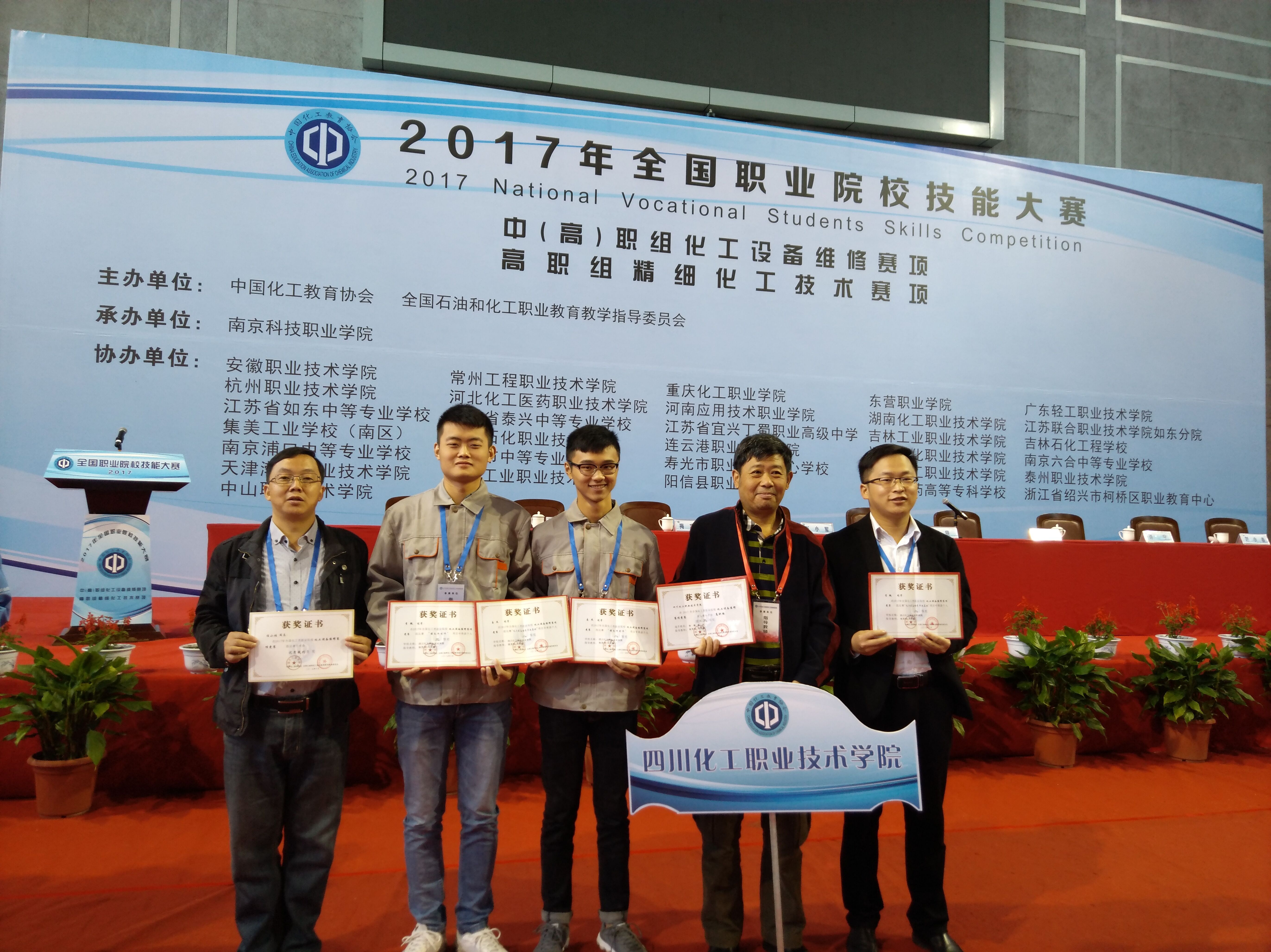 10月23日至25日,由中国化工协会、全国石油和化工职业教育教学指导委员会联合主办的“2017年全国职业院校技能大赛化工设备维修赛项”比赛在南京科技职业学院举行。在我院机械工程系徐茂钦、马丰钢两位老师的精心指导下,学院化工装备技术1531班易杰、李微同学代表四川省高职院校参加了此次大赛。