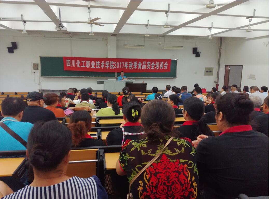 为提高我院食堂从业人员食品安全意识,明确食品安全法律法规的警戒线,根据省教育厅,省(市)食药监局的要求及学院工作的安排,后勤服务处于近日组织学院食堂全体从业人员开展了2017年秋季食品安全培训。学院后勤服务处刘真如处长对食品安全工作的重要性、食堂工作规范及注意事项做了阐述;泸州市江阳区食药监局专家,餐饮服务股股长王强用丰富的案例,触目惊心的安全事故数据,阐述了责任心和工作细节在食品安全中的重要性。会后,刘真如处长检查了食堂从业人员的健康证办理情况,对仍未办理健康证的员工提出了严厉的批评,并要求在健康证未办理之前不得上岗。
