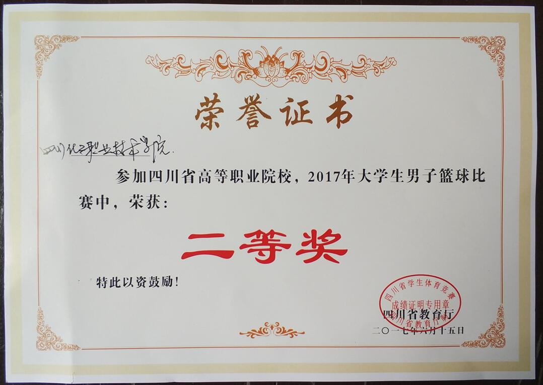 2017年6月16日--18日,由四川省教育厅主办的“四川省高等职业院校大学生篮球比赛”在四川文轩职业学院举行,来自全省各地市州的31所高职院校参加了本届大学生篮球比赛。我院在体育教研室向宇、肖艇、陈平三位老师的带领下组队参加了本届篮球比赛。