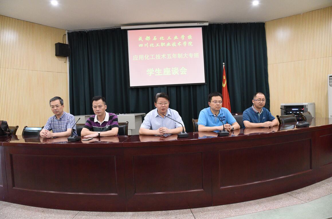 文申柳副院长一行抵达成都石化工业学校后,分别在该校南、北校区与我院“3+2” 2015级、2016级化学工艺五年制大专班、汽车检测与维修五年制大专班同学举行了座谈交流会。会上,文申柳副院长向同学们详细介绍了学院的办学历史和办学特色;罗伦忠处长对五年制同学的录取方式、就业前景等进行了详细介绍;两位专业负责老师分别对汽修专业、应化专业的人才培养方案进行了详细解读,并对行业的发展前景进行了详细介绍。座谈会上,五年制同学们踊跃提问,他们对未来将要升入的大学充满了好奇,提出了包括学院环境、学习、生活、管理、就业等方面的问题,文申柳副院长一行给学生们一一作了解答,并鼓励同学们在成都石化校一定要努力学习,要有明确的人生规划,争取以优异成绩顺利升入四川化院深造学习,不辜负石化校、化院领导、老师的殷切期望。通过本次座谈会的召开,五年制大专班同学们进一步明确了学习方向,树立了学习的信心。