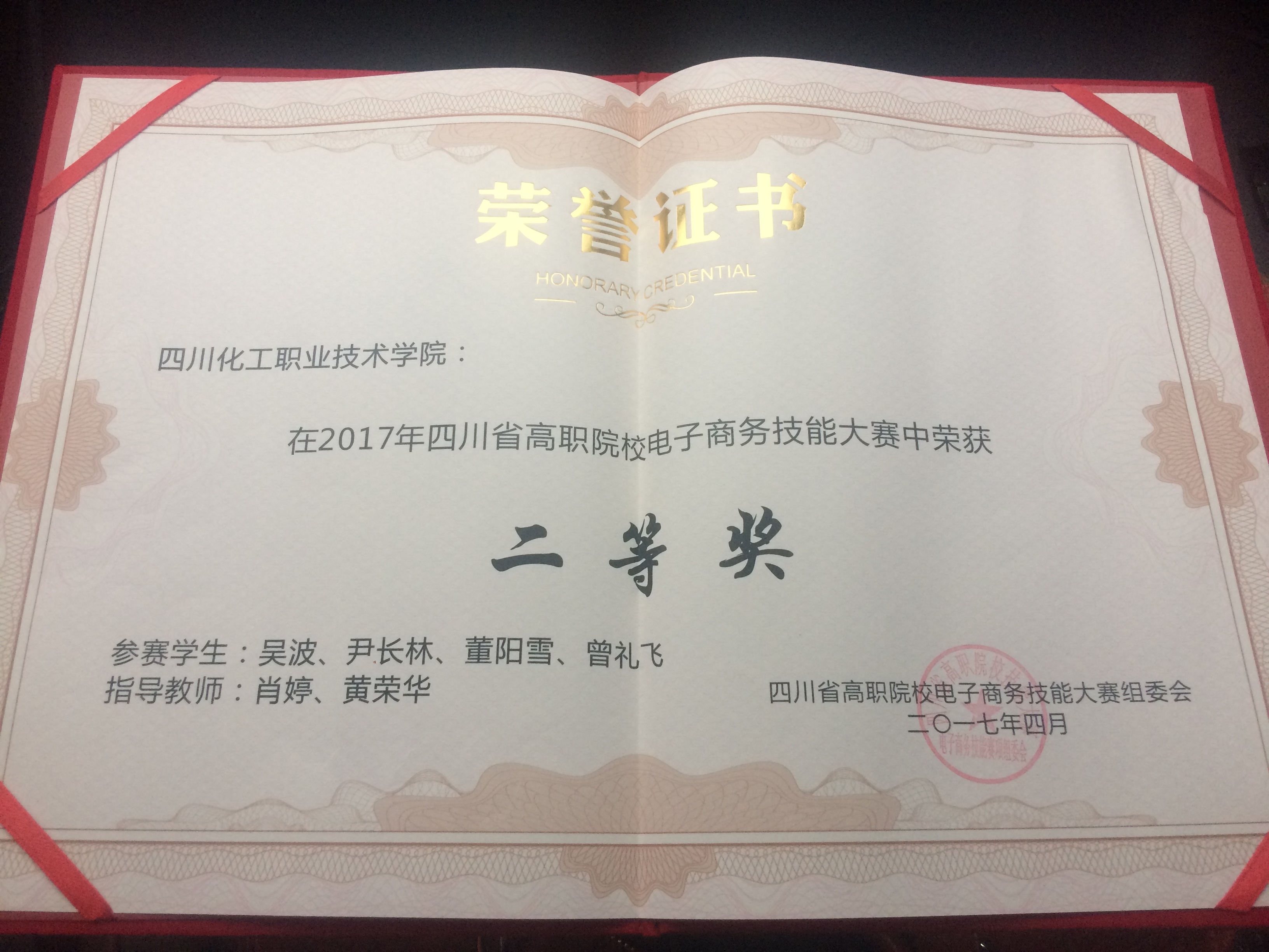 4月9日,经济管理系电子商务专业学生在四川省教育厅主办的“四川省高职院校电子商务技能大赛”中荣获二等奖,实现了电商专业技能竞赛获奖的历史性突破。