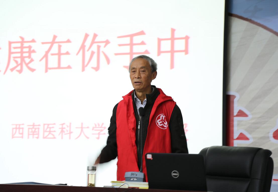 活动中,学院工会邀请原西南医科大学名师,中药学教授,硕士生导师,四川省药学会天然药理学、市药学会副理会长庄诚教授作了“健康在你手中“专题讲座。庄教授结合40多年临床工作经验,围绕着养生十二字原则:“饮食有节,起居有常,不妄劳作”的中心思想展开。庄教授深入浅出的讲解,风趣幽默的语言,为大家上了一堂深刻而生动的健康知识课。